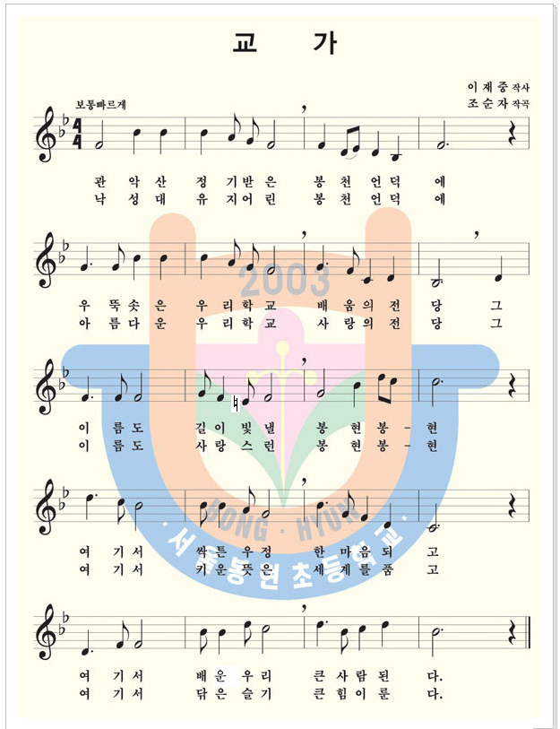 작사 이재중은 초대 교장선생님, 작곡 조순자는 초대 교감선생님이다. 모두 기억난다.