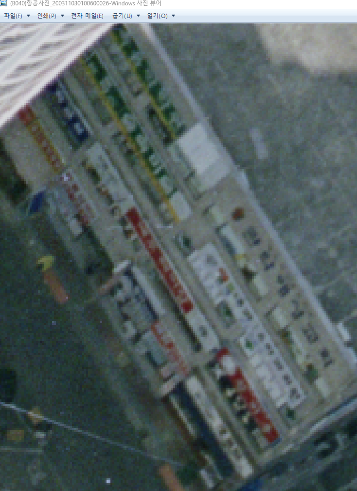 국토정보플랫폼은 과거 사진을 상당히 고화질로 제공하는데 상가를 클로즈업 해보다 깜짝 놀랐다. 이게 이렇게까지 식별될 정도로 보인다고? '황비홍' 중국집은 정말 완전히 잊고 있었다. 저기는 직접 가본적은 없지만 배달은 많이 시켜 먹었다. 현재의 스마일 공인중개사가 있는 곳은 '빵굼터'라는 빵집이 있었다. 내 생각보다 꽤 오래 버텼구나. 1층 제일 왼쪽에 보이는 곳이 동아문구고, 그 옆이 동아마트였다.
