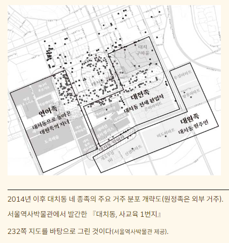 강남, 서초로 이주하는 두 사례 중 첫 번째 사례가 바로 '연어족', 두 번째 사례가 바로 '대전족'이다. 즉 이 사람들은 온전히 '강남 주민들' '대치동 주민들'로만 연구적으로 소비되어 왔으나 사실 강남 인근지역의 합동재개발아파트 지역들과도 면밀한 연관이 있는 것이다. 소위 '연어족 존'에 있는 아파트들의 준공일은 대부분 2005~2006년에 집중되어 있다. 이들이 이 '강남 재건축 아파트 1세대' 완공 전인 90년대 후반부터 00년대 전반까지 사당 우극신, 행당 대림한진, 봉천신도시 등에서 거주하다 이 시기에 되돌아갔다.