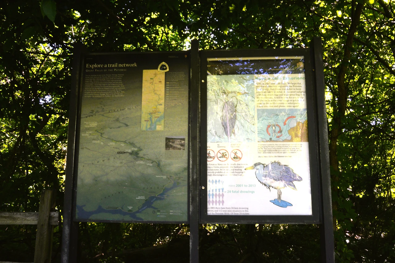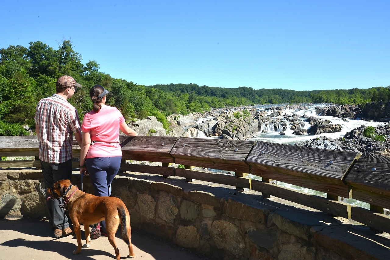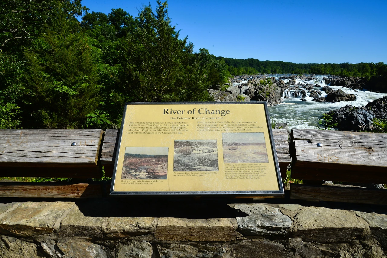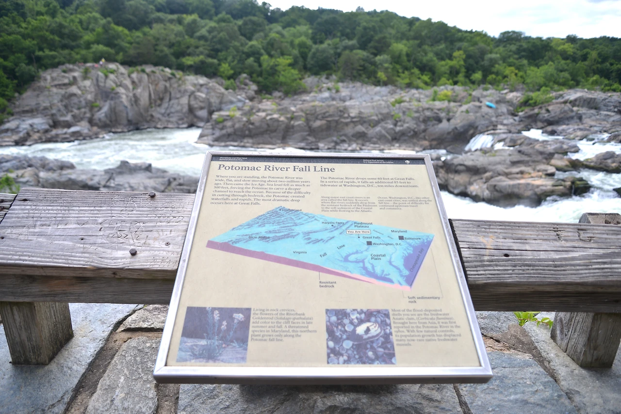 이곳은 Ⓐ 메릴랜드 쪽의 <그레이트 폴스 타베른 방문자 센터(Great Falls Tavern Visitor Center)>와 Ⓑ 버지니아 쪽의 <그레이트 폴스 파크(Great Falls Park)>로 나뉘어 관리되며, 각각 폭포의 굽이치는 물결을 바라볼 수 있다. 강을 따라 여러 트레일과 암벽 등반 구역도 있어서, 자연의 힘찬 생동감을 느끼며 활동적인 시간을 보낼 수 있는 장소로 이름나 있다.