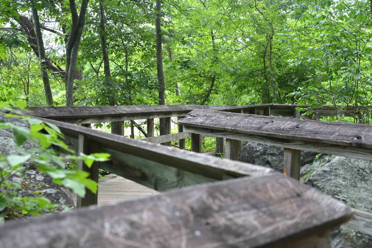 그레이트 폴스는 거대한 폭포는 아니지만, 여러 개의 작은 폭포들이 계단식으로 이어져 바위 사이로 흐르는 오밀조밀한 물줄기가 인상적이었다. 규모가 크지 않아 오히려 아늑한 자연의 품속에 포근히 안긴 듯한 느낌이 참으로 경이로웠다. 포토맥 강과 주변의 숲이 어우러져 만들어내는 경치는 평화로움과 동시에 생동감을 선사했다.