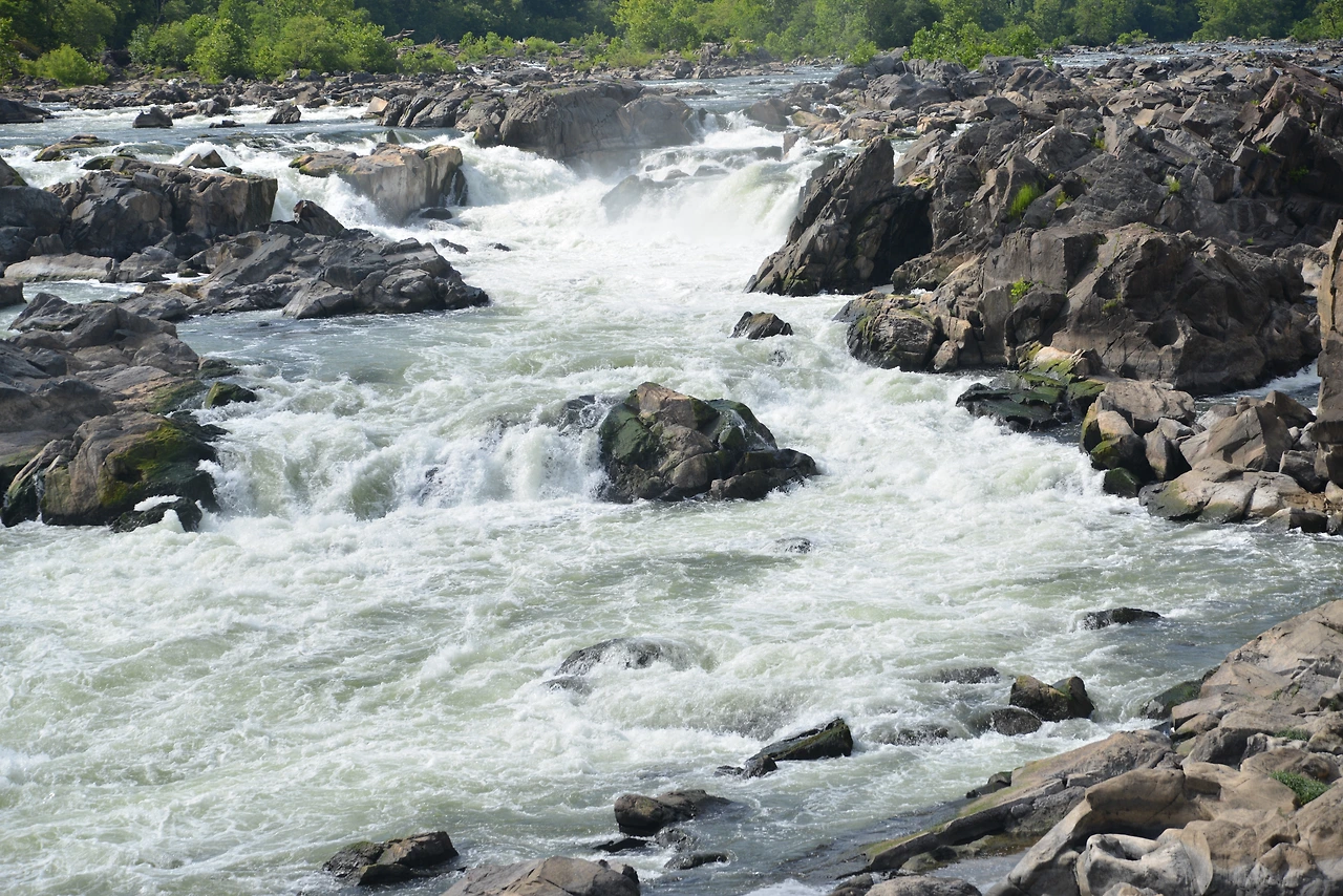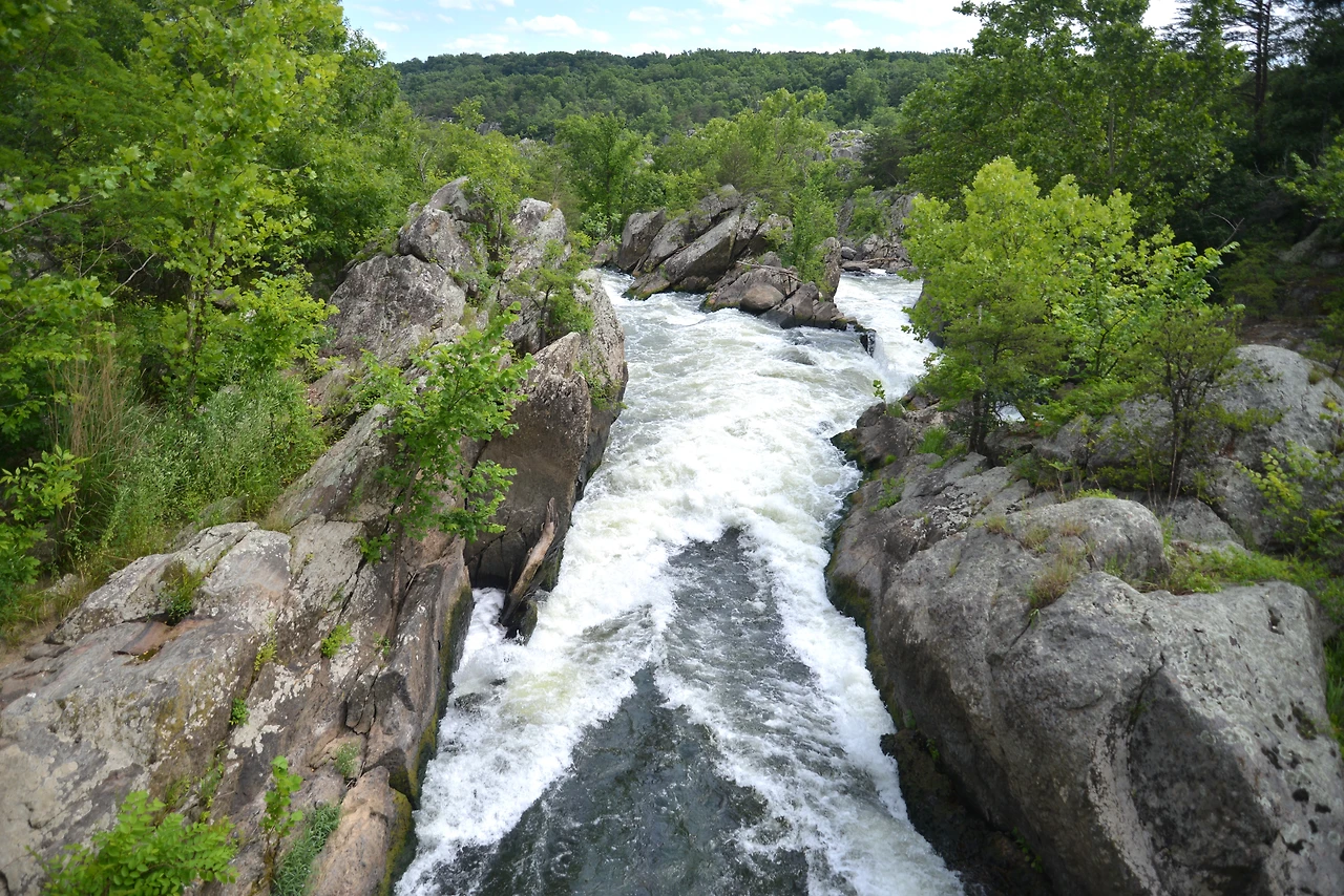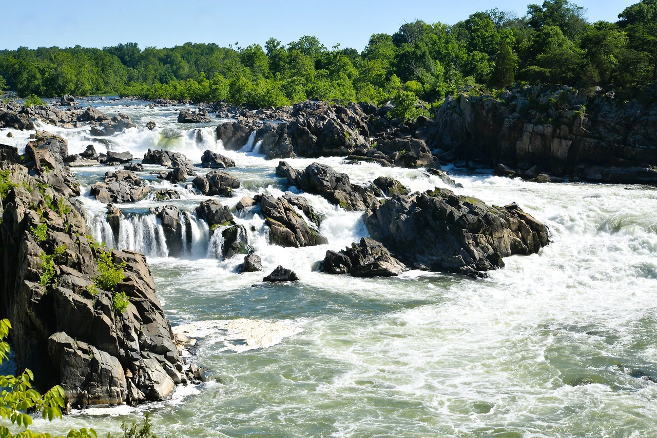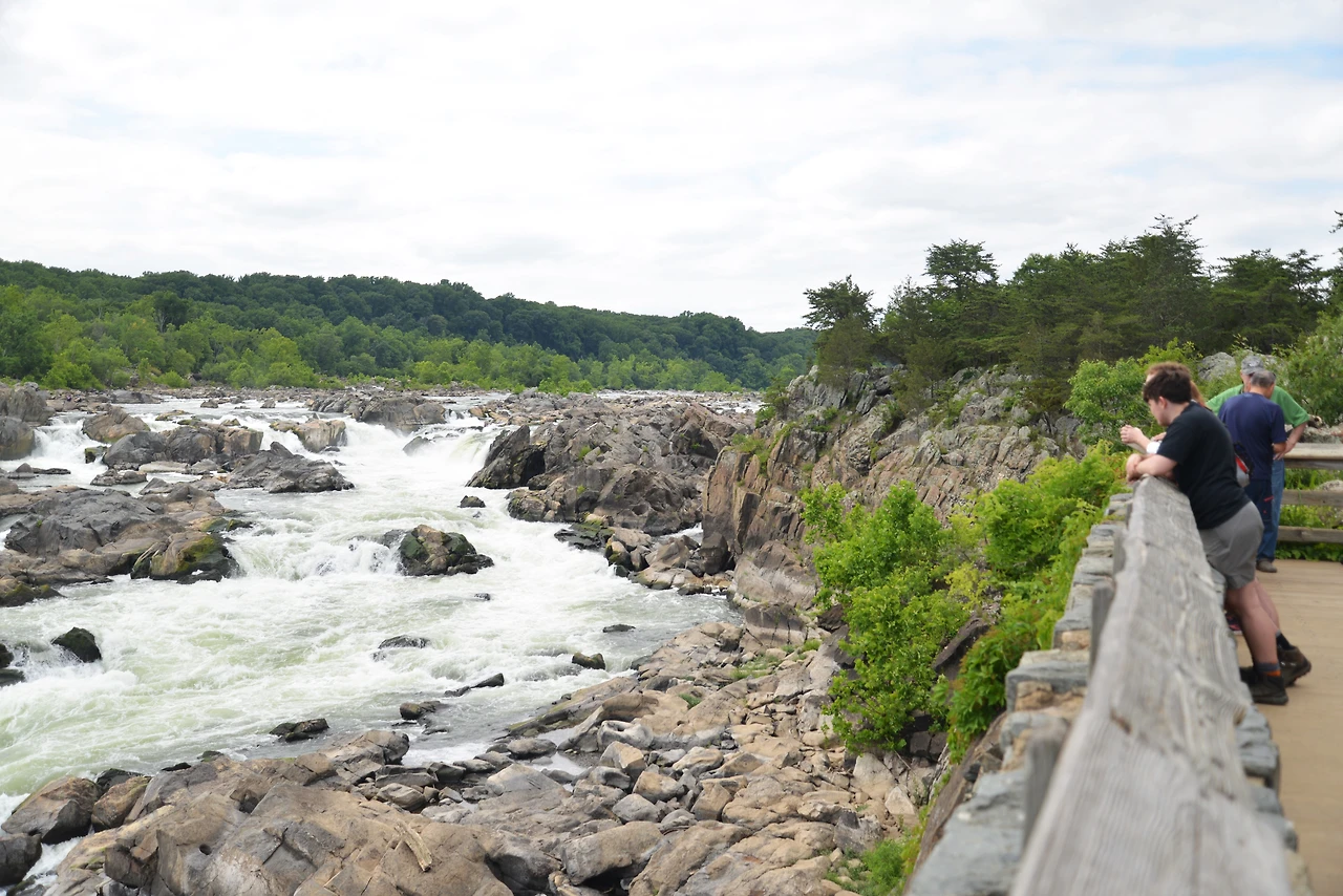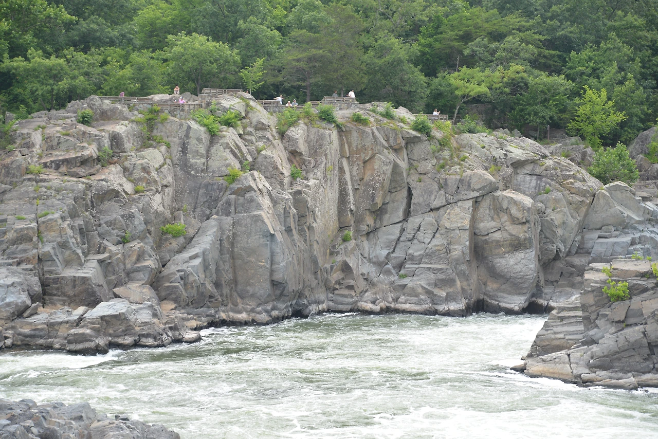 버지니아 쪽 그레이트 폴스 파크(Great Falls Park)는 절벽과 바위가 어우러진 아름다운 지형으로 여러 개의 작은 폭포와 함께 강줄기가 내달리는 모습이 인상적이다.