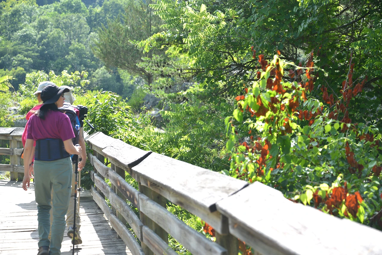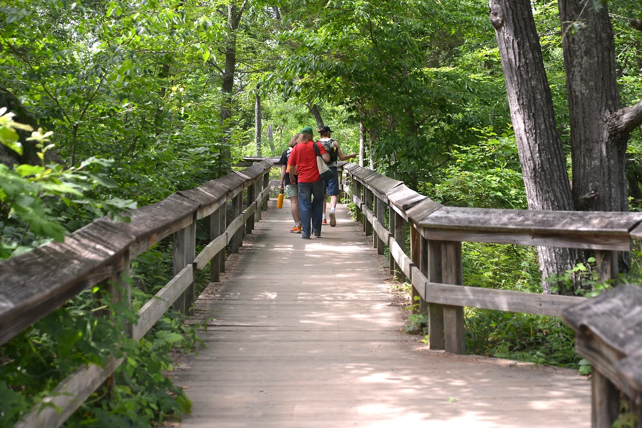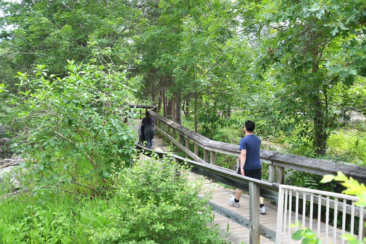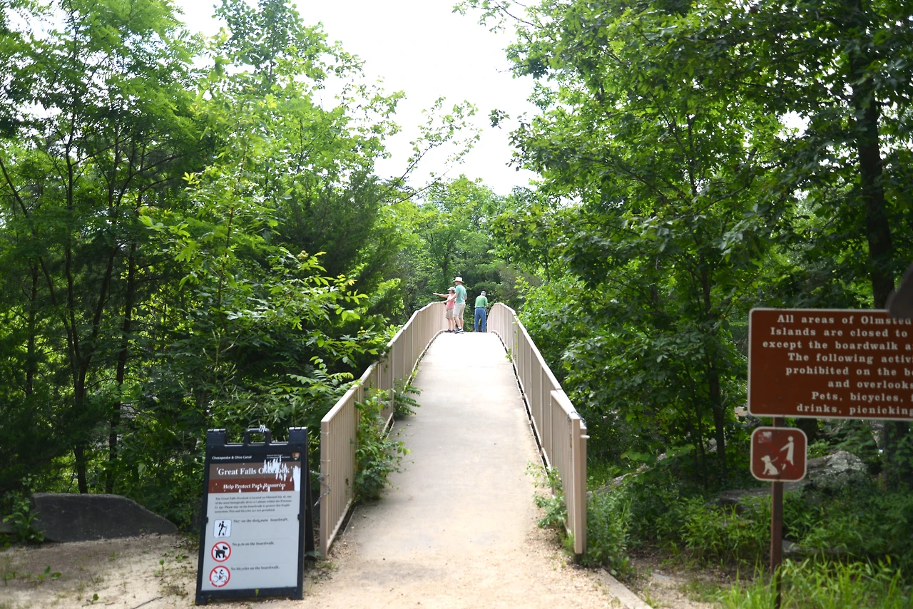 메릴랜드에 있는 그레이트 폴스 폭포를 만나기 위해, 옴스테드 아일랜드 산책로(Olmsted Island Trail)를 쉬엄쉬엄 걸었다. 약 800미터(0.5마일) 길이의 산책로는 나무 보드 워크와 다리로 이어져 있고 산책로 곳곳에 계절따라 피어나는 야생화와 습지의 새들이 우리를 반겨준다.