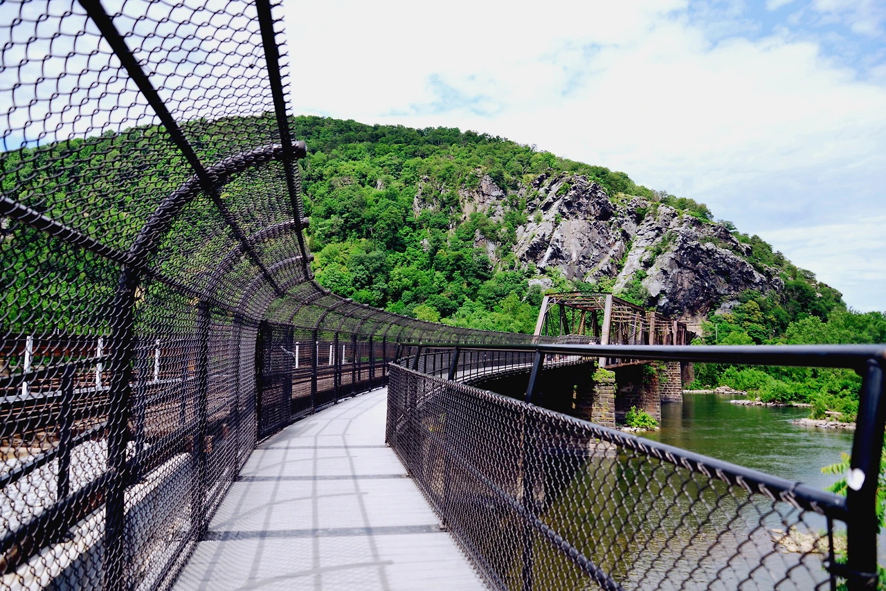 메릴랜드주와 이어지는 도보 다리(Foorbridge to C&O Canal and Maryland Heights),