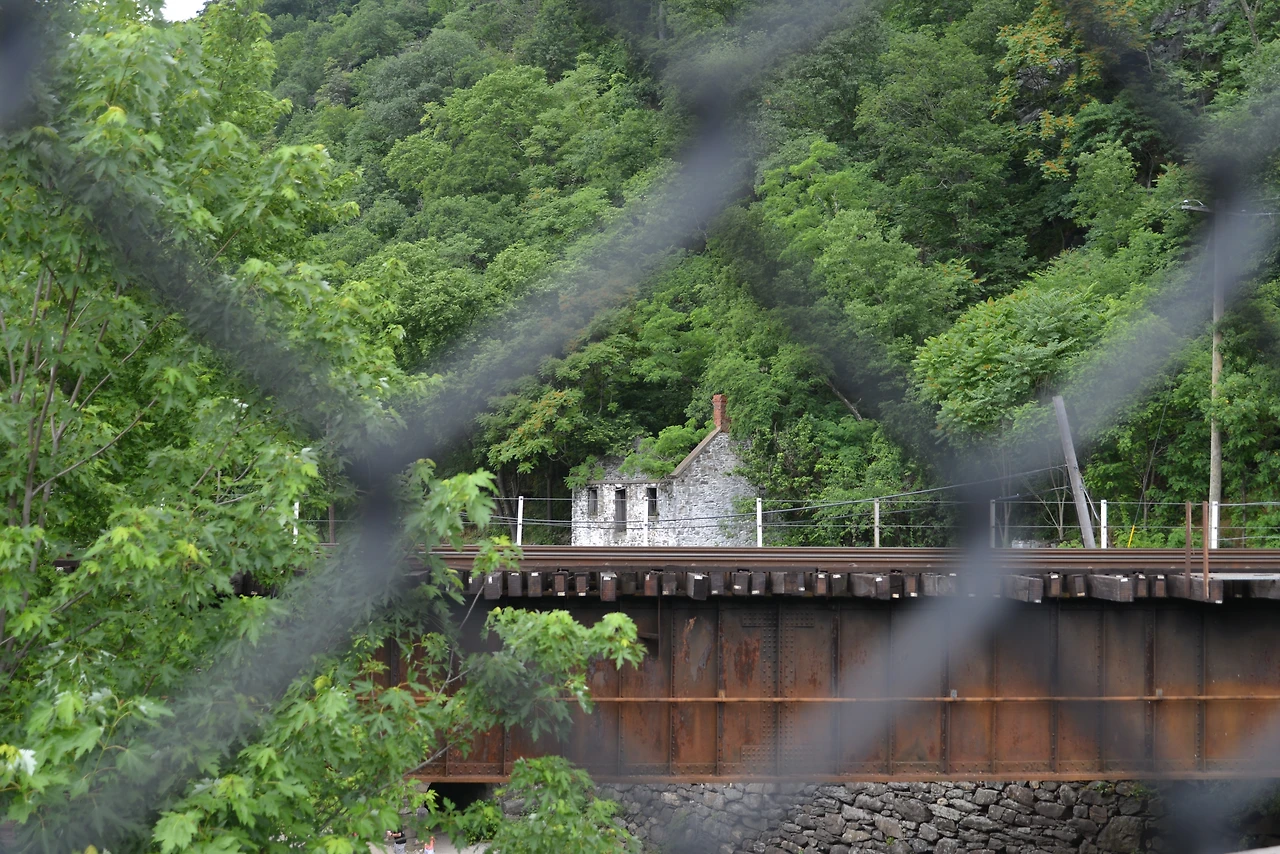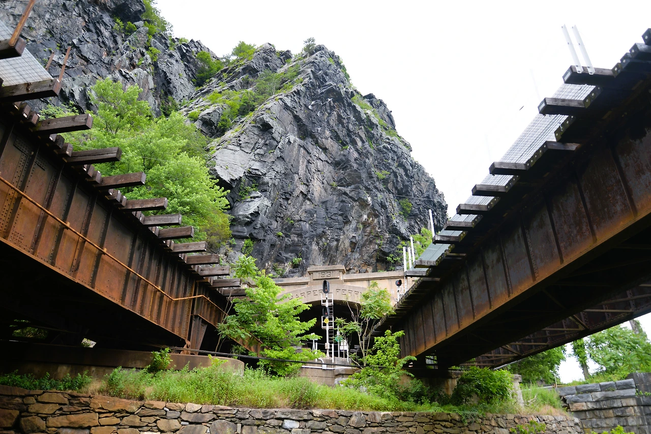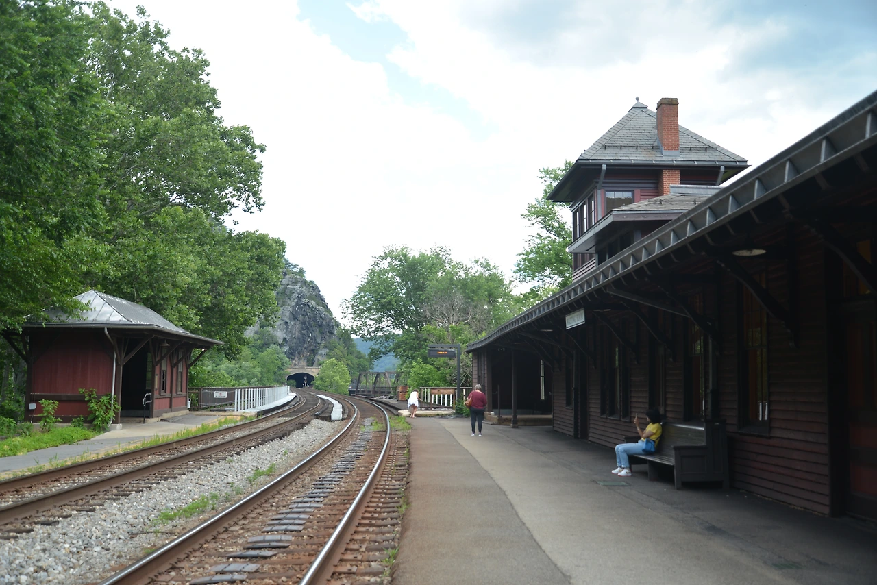 --> 하퍼스 페리 트레인 스테이션 (Harpers Ferry Train Station)은 현재도 암트랙(Amtrak)과 마크 트레인(MARC Train)을 통해 워싱턴 D.C. 와 연결된 기차역이다. 19세기 중반 빅토리아 건축 양식을 자랑하며, 역사 내부는 옛 모습이 그대로 보존된 박물관이나 다름없었다. 기찻길 위로 기다랗게 이어진 화물열차가 크나큰 경적을 울리며 덜커덕거리며 지나쳐 간다.