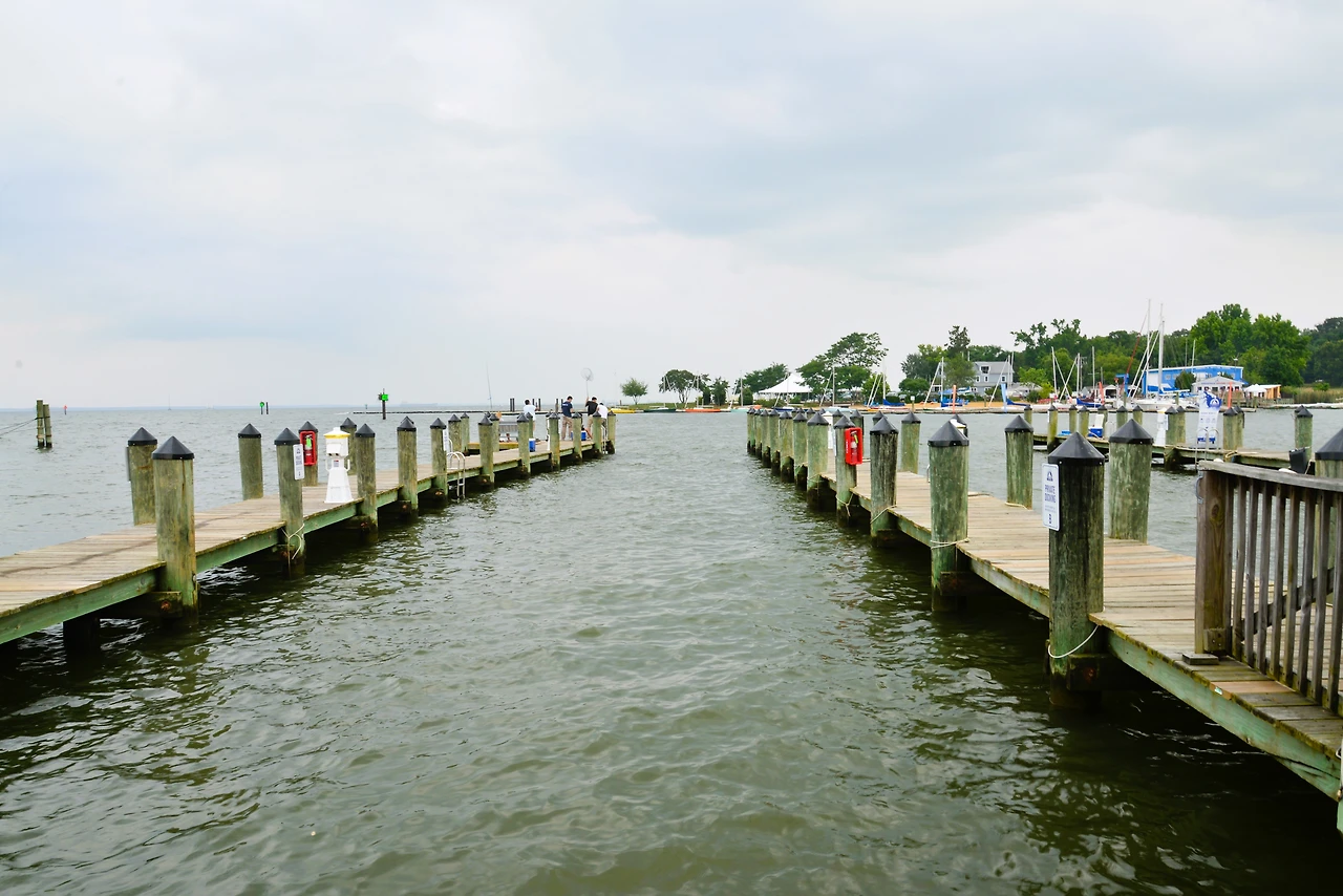 부두에 요트와 세일보트가 정박해 있어 체서피크만의 매력을 느낄 수 있다.