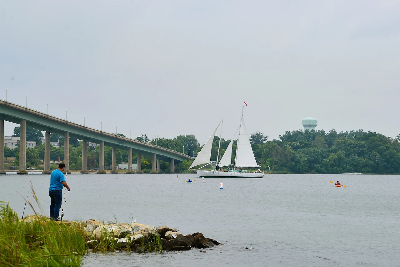 메릴랜드주 아나폴리스의 이스트포트(Eastport) 지역에 있어서 체서피크만을 가까이 조망할 수 있다.