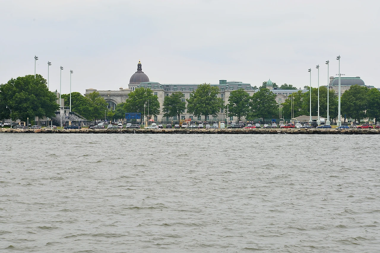 끝없이 펼쳐진 체서피크만 바다와 매력적인 해안선, 미해군사관학교 캠퍼스 외경을 감상할 수 있다.