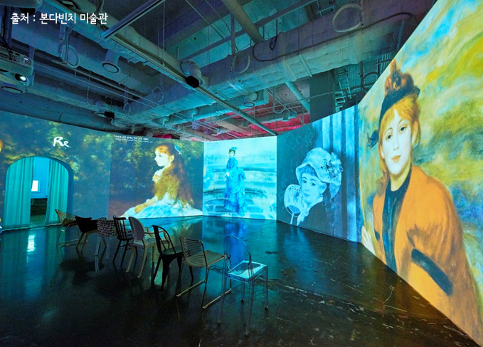 르누아르의 작품을 단순한 캔버스가 아닌, 영상과 향기 등으로 다채롭게 즐길 수 있는 컨버전스 전시예요.