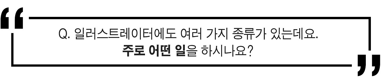 이강훈 : 일로서 그림을 그리는 거니까 내가 그리고 싶은 그림만 그릴 수 없고, 클라이언트가 원하는 그림을, 때로 나의 의지에 반하는 그림을 그려야 하는 상황이 생겨요. 그럴 때는 일이라고 생각하고 받아들이는 편이죠.