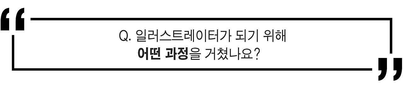 이강훈 : 이건 따로 자격증 같은 게 있는 게 아니라 좀 애매한 부분이 있는데요. 아무래도 그림 그리는 걸 좋아하고, 많이 그리는 게 중요하겠죠. 보통 거의 미대를 나온 사람들이 많이 하는데, 저는 대학에서 시각디자인을 전공했지만 요즘은 서양화, 동양화 전공자들도 많이 하고 있어요. 본격적으로 대학에서 일레스트레이션과를 개설해 비중있게 가르치는 경우는 많지 않은 것 같아요. 시각디자인과에서 부분적인 파트로 다루든가 하는 식이죠.