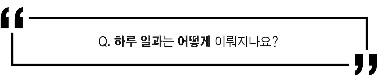 이강훈 : 심플합니다. 저는 주로 오전에 작업을 많이 해요. 아침엔 보통 직장인과 비슷하게 7시 전후로 일어나서, 오전 중에 일을 해요. 프리랜서는 제약이 따로 없어서 규칙적으로 생활하지 않으면 힘들어져요. 규칙적으로 하지 않으면 체력적으로도 일을 오래 할 수 없고, 마감을 지키는 것도 어려워지죠. 프리랜서는 어느 정도 다들 그렇겠지만 자기관리를 철저히 해야한다는 생각이 들어요. 오후에는 내 시간을 가지는 경우가 많아요. 일 말고 개인적으로 그림을 그리는 시간을 갖거나 글을 쓰거나, 운동을 하거나, 놀거나 그런 식이죠.