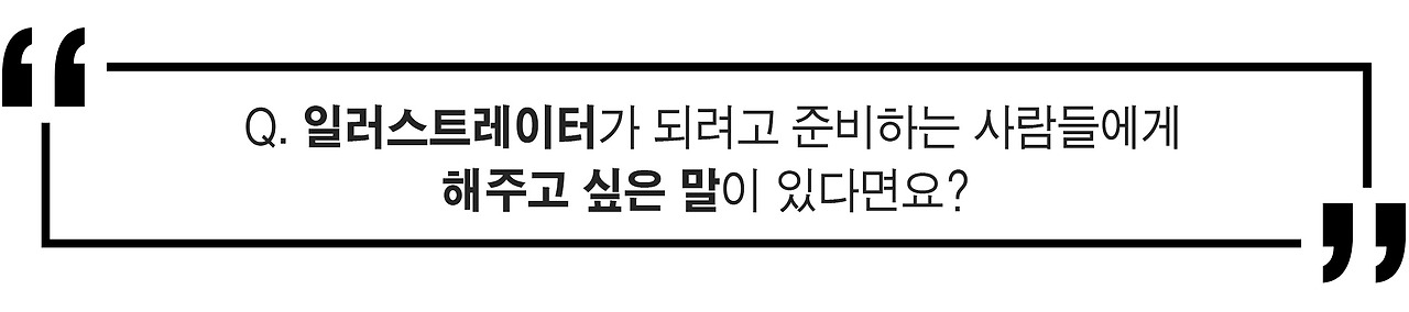 또 하나 말씀드릴 수 있는 건, SNS나 텀블러 등 온라인 매체들을 많이 활용하면 도움이 될 것 같아요. 최근엔 고등학생인데 이미 그림으로 인기 얻는 친구들도 많아요. 매체들을 활용해 적극적으로 그림을 보여주는 거죠. 사람들이 내 그림을 어떻게 보는가, 하는 것도 알 수 있고, 더 좋은 건, 단순히 국내 뿐 아니라 전 세계 사람들이 내 그림을 볼 수 있다는 거죠. 그건 우연찮게 일로도 연결이 되곤 해요. 그런 기회는 누구한테나 가능한 거라서, 온라인 매체를 어릴 때부터 잘 활용하는 게 좋다는 생각을 해요.