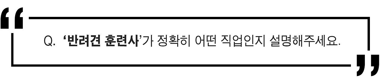 강형욱 : 반려견 훈련사는 분야가 다양해요. 군대에서 군견을 훈련하는 분들, 마약 탐지나 폭파물 감지견을 훈련하는 분들, 그리고 가정에서 문제가 되는 친구들이 함께 조화를 이룰 수 있도록 하는 행동전문가 등 다양한 분야가 있죠.