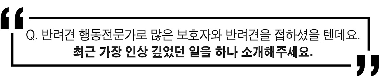 보호자가 안정적인 곳에 앉아있으면 개는 안정을 찾고, 불안정하다면 개들 역시 불안해집니다. 제가 본 대부분의 사례에서 보호자가 의지가 있었고 끊임없이 나아지는 부분을 찾고자 했어요. 그런 노력으로 사람과 개가 잘 어우러져 사는 모습이 인상 깊었어요.