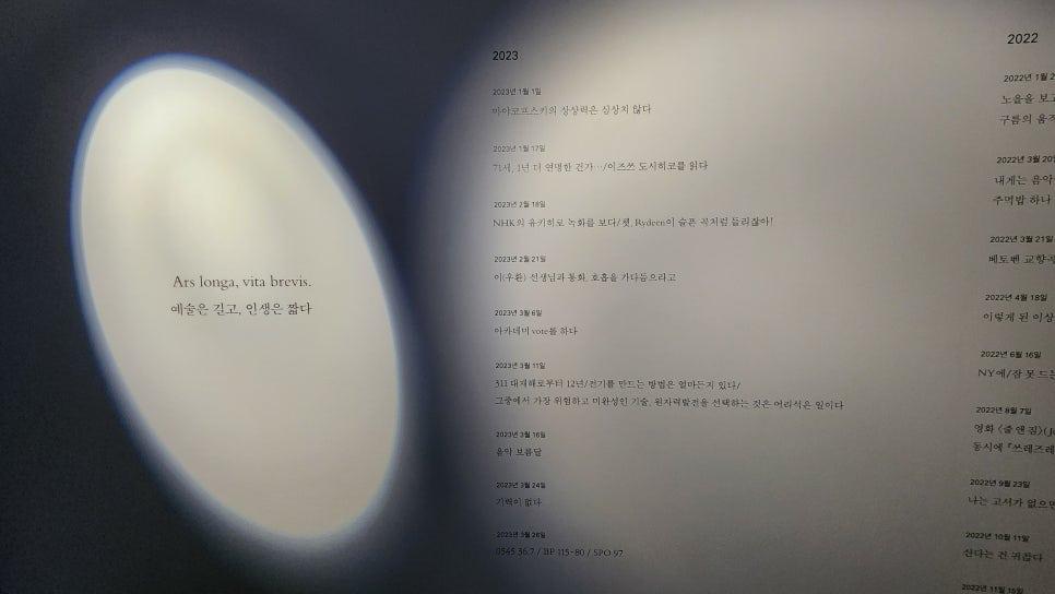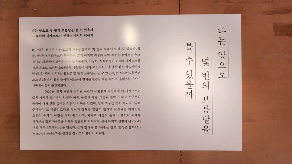 이 전시는 사카모토 류이치의 유작 에세이 '나는 앞으로 몇 번의 보름달을 볼 수 있을까' 출간 기념 추모 전시인 만큼, 그의 유작 에세이도 함께 판매하고 있었다.