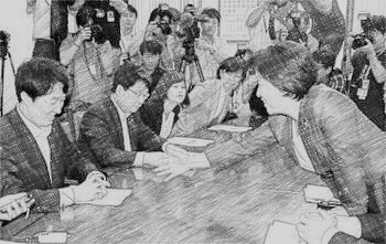 대회장에 들어서며 심상정이 내미는 손을 이석기는 잡아주지 않았다. 북소리가 울리기도 전, 예상치 못한 곳에서 움직인 손속은 무자비했다. 한손으로는 제명의 칼을 겨누면서 다른 손으로는 슬쩍 악수를 청하는 철혈검의 암수는 튕겨나갔다.