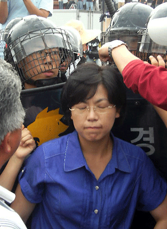 웬만한 의원들조차도 엄두를 못낸 일에 나선 것이다. 궁지에 몰린 노동자들을 도와야 한다는 일념에 자신이 당할 시련은 아랑곳않고 선뜻 결행하는 사람이 바로 이정희였다. 당시 구사대는 공장 정문 앞에서 농성하던 민주노동당 의원들에게 물세례, 욕세례를 악다구니처럼 퍼부었다.