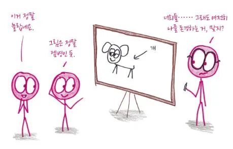 작가가 수학 교사로 근무하던 시절 문제를 내기 위해 칠판에 개를 그렸는데 그 그림에 대한 학생들의 반응이 뜨거웠던 것이 그 시작이라고 한다. 원서의 제목은 겸손하게도 Math with Bad Drawings지만 학생들이나 내가 제목을 지었다면 Bad 대신에 Cute나 Charming을 썼으리라.
