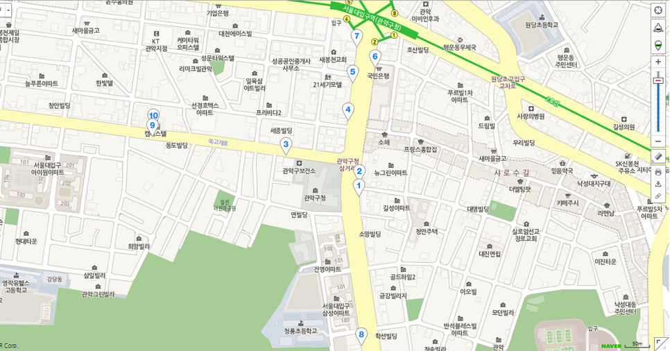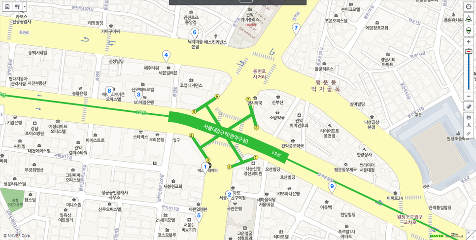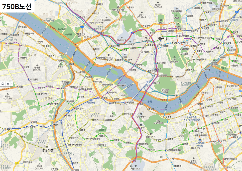 현재 내가 살고 있는 동네는 봉천동, 한강의 남쪽 지역이다. 그래서 광화문이나 시청이 위치한 한강의 북쪽 지역으로 가려면 필히 대교를 건너야 한다. 나는 주로 집에서 도보 3분 거리에 위치한 관악구청 버스정류장을 이용한다. 관악구청을 기준으로 총 10개의 버스정류장이 있고, 서울대입구역을 기준으로 총 7개의 버스정류장이 있다.(간선, 지선 포함/겹치는 버스정류장은 개수에서 제외)