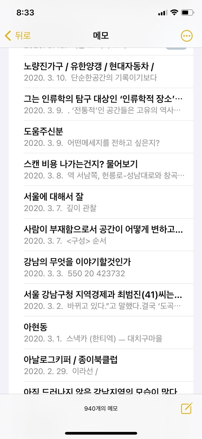 '우리가 매일 오가는 출 퇴근길도 이젠 여행지가 될 수 있다.'는 가능성에 스스로가 충분히 설득이 되었고, 그렇게 여행을 하기로 했다. 창 밖으로 보이는 풍경들 속에서 궁금한 지점들이 생기면 핸드폰 메모장이나 노트에 키워드만 간단히 적어 두고, 힌트를 얻을 만한 자료를 조사하며 정보를 모았다.