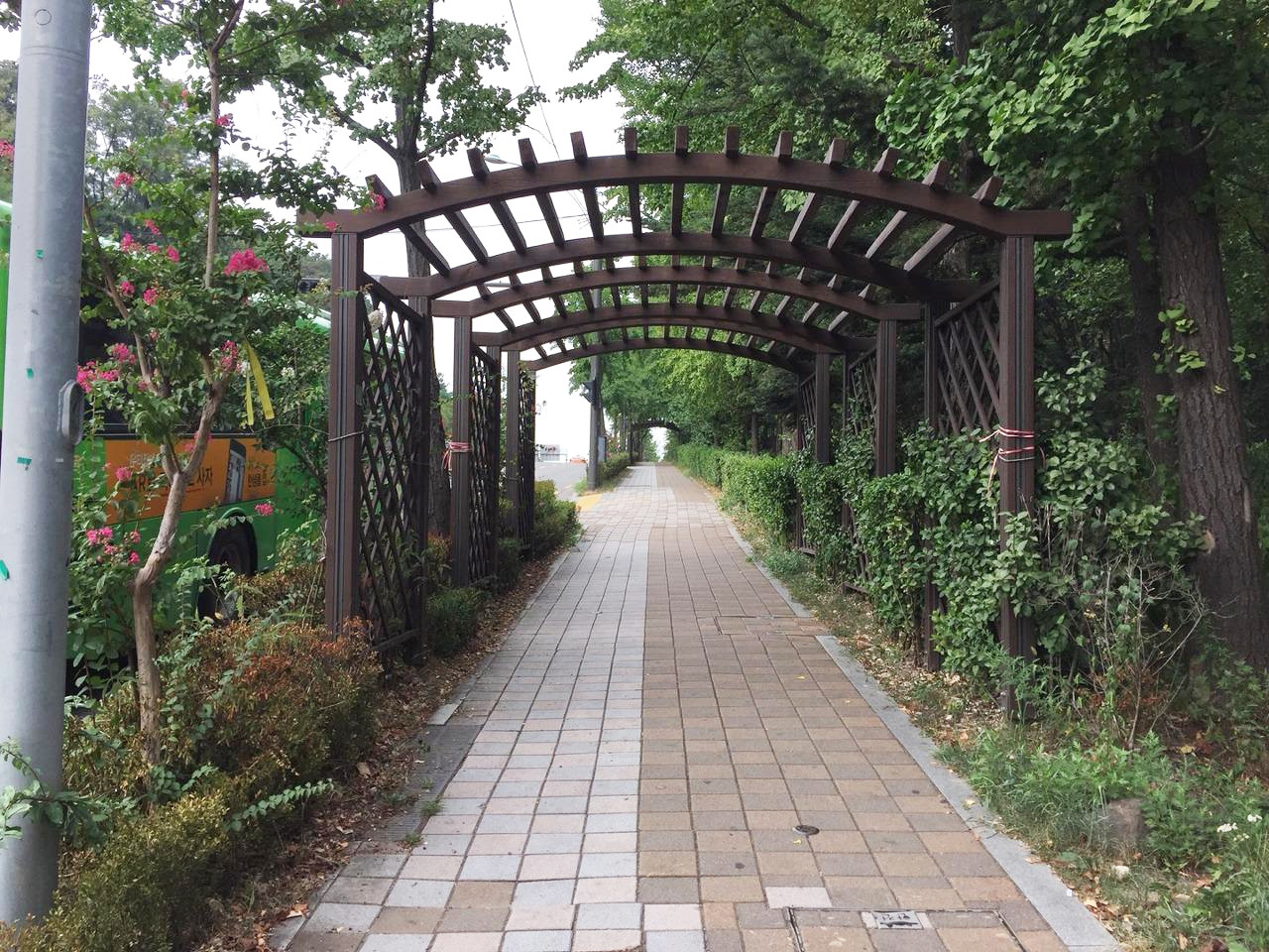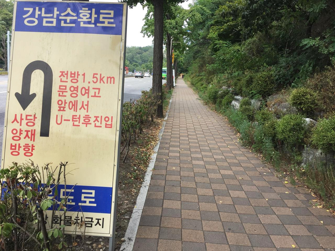 주변을 살펴보며 한참을 걸었을까? 도로변을 따라 심겨진 가로수 옆에 설치된 익숙한 무언가가 보인다. 이 설치물은 사진에 보이는 아파트 앞에서 시작하여 관악구청을 지나 서울대입구역 인근에서 끝이 난다. 서울대와 가까워지고 있다는 것을 상징하는 것일까? 아니면 단순하게 경관을 좋게 하기 위한 설치물에 불과한 것일까? 생각이 여기까지 미칠때쯤 아직도 서울대입구역은 보이질 않고 도착하려면 좀 더 걸어야 한다는 사실에 시간을 확인해봤다. 서울대 정문에서 출발한 시간은 3:00, 현재 시간은 3:20분. 20분 정도 걸렸다. 역까지는 10여분 정도를 더 걸어야 한다. 다시 정리하자면 서울대 정문에서 서울대 입구역까지는 도보로 약 30분 정도가 걸린다는 결론을 내릴 수 있다. 좀 더 정확한 데이터를 도출하기 위해 지도로 검색해봤다.