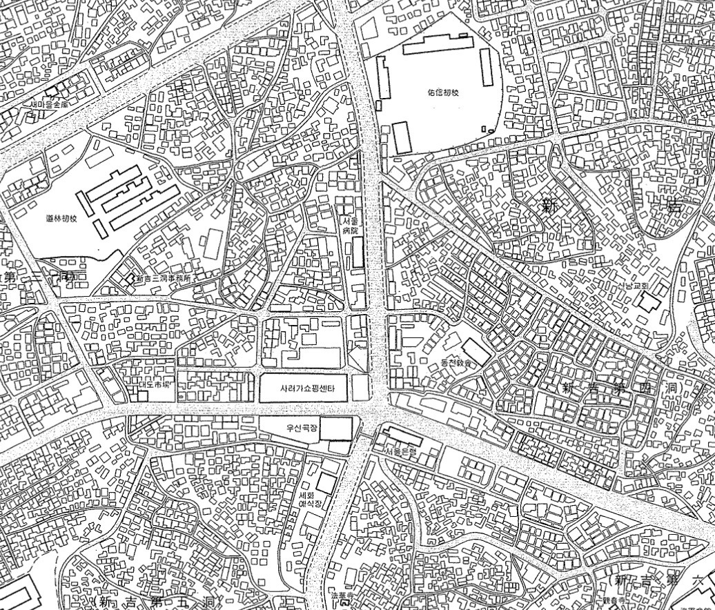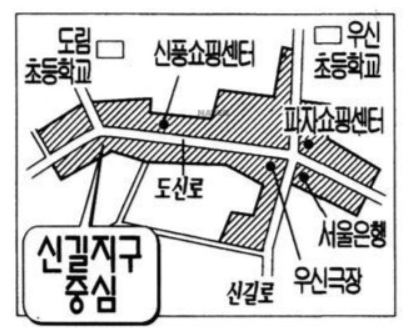 사거리를 중심으로 빽빽한 주거지와 극장과 쇼핑센터가 보이고, 지도에 표기 되어 있지는 않지만 골목 골목에도 가게와 상점이 있었다. 골목 안 가게들은 지금도 있다. 이런 기반 시설들이 모여 나름 큰 상권이 형성되어 있었다는 걸 알 수 있었다. 그러는 와중에 고층건물이 없다는 것도 신길동의 특징 중 하나다. 최근에 조성된 신길 뉴타운 신축아파트가 그나마 높은 건물측에 속하는 편인데 그래서 인지 기존에 있던 건물과 새로 생긴 건물이 공존하며 보여지는 풍경은 다소 이색적이다. 앞서 언급했던 신길동의 정체성이 과거로부터 현재까지 이어지다가도 지워지고 채워지기도 하면서 변화하는 과정으로 이해 하는 지점으로 해석 할 수 있다. 상징적인 장소가 아니어도 변화 과정을 살필 수 있는 흔적들이 곳곳에 있고, 그것을 추적하는 과정에서 발견되는 지점들이 많은 곳, 바로 신길동이다.