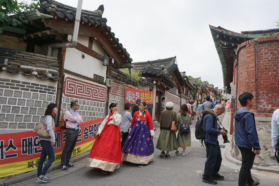 한 때 광화문 인근에 위치한 회사를 다닌 적이 있다. 회사 건물 옆으로는 청계천이 흘렀다. 덕분에 한참 일을 하다가도 멍하니 창 밖을 바라볼 때가 많았다. 그럴 때마다 관광객이 타고 내리는 관광버스들이 분주하게 오고 갔다. 마치 공장에 물건을 나르듯이 사람들을 내려주고 또 태우고 어디론가 이동하고 도착하고를 수도 없이 반복했다. 어디서 그렇게 많은 사람들이 오는 것인지 내내 궁금해 하며 시선을 거두지 못했던 그 때 그 순간을 북촌에서 또 다시 마주 했었더랬다.