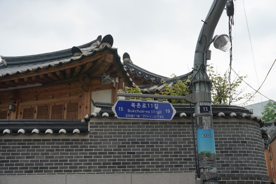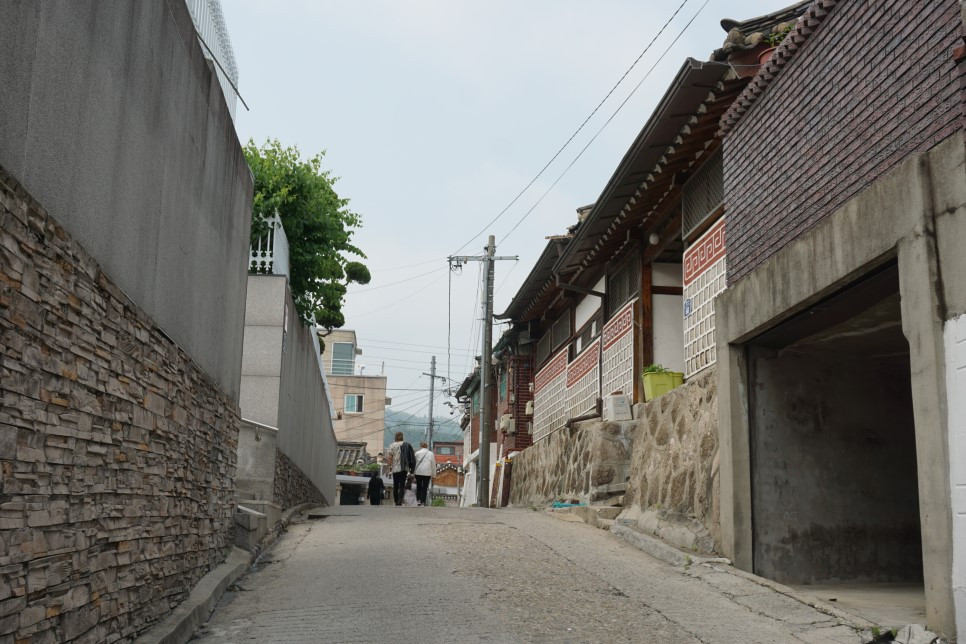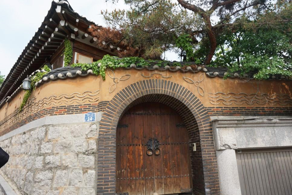 북촌은 조선의 부유 계층을 대상으로 조성된 한옥 단지이다 보니 규모가 크고, 형태나 모양새가 가지각색이었다. 일단 기본적으로 각자의 집을 경계로 하는 담벼락이 존재한다. 지대 자체가 높은 것도 있겠지만 규모가 큰 한옥일 수록 담벼락이 더 높았다. 담장이 거의 집을 둘러싸고 있다고 해도 과언이 아니다. 익선동의 담벼락은 이웃집과 맞닿아 있어 앞에서 보면 서로 붙어 있는것 같았는데. 여기서 큰 차이를 보였다.