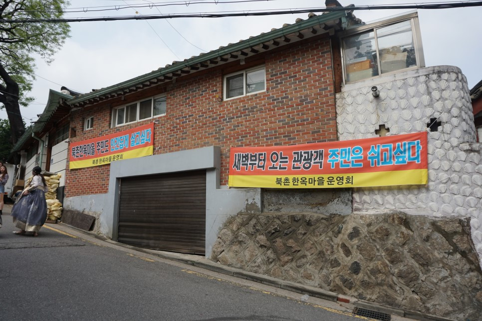 그럼에도 불구하고 여전히 사람들은 많았다. 문득, 한국을 처음 방문 하는 이들은이 상황을 어떻게 받아 들일까? 궁금해졌다. 좋다고 소문나서 한 걸음에 달려 왔는데 분위기가 심상치 않으니, 그저 당황스러울 게 뻔했다. 주변을 이리 저리 살펴 보니 '조용히 해달라'는 피켓을 든 채 서 계시는 분들이 몇몇 보였다. 그러나 적극적으로 제스쳐를 취하진 않았다. 게다가 북촌마을을 오가는 길은 국유지로, 사람의 통행을 금지할 법적 근거가 없는 상황이니 참 난 감하기 그지 없다.