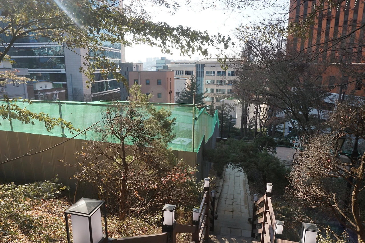 힐튼호텔 후면부는 인적이 드물다. 이곳을 아는 사람은 흔치 않다. 높이 솟은 서울 스퀘어와 힐튼호텔에 가려져 있기 때문이다. 힐튼호텔에서 몇 걸음만 옮기면 바로 건물 뒤쪽에 도착한다. 이곳에는 한국 최초의 근대식 병원인 제중원 부설 제중원교회가 전신인 남대문교회도 있다. 얼핏 보면 통하는 길이 없어 보이지만 내리막길이 있다. 그동안 짐작만 했을 뿐 나도 이길로 가본 건 처음이었다. 가파른 계단을 곧장 내려가면 주차장이 나오고, 이곳을 통과하면 쪽방촌이 바로 보인다. 소문으로만 듣고, 멀리서만 보던 쪽방촌에 닿기가 이렇게 쉬울 줄 몰랐다.