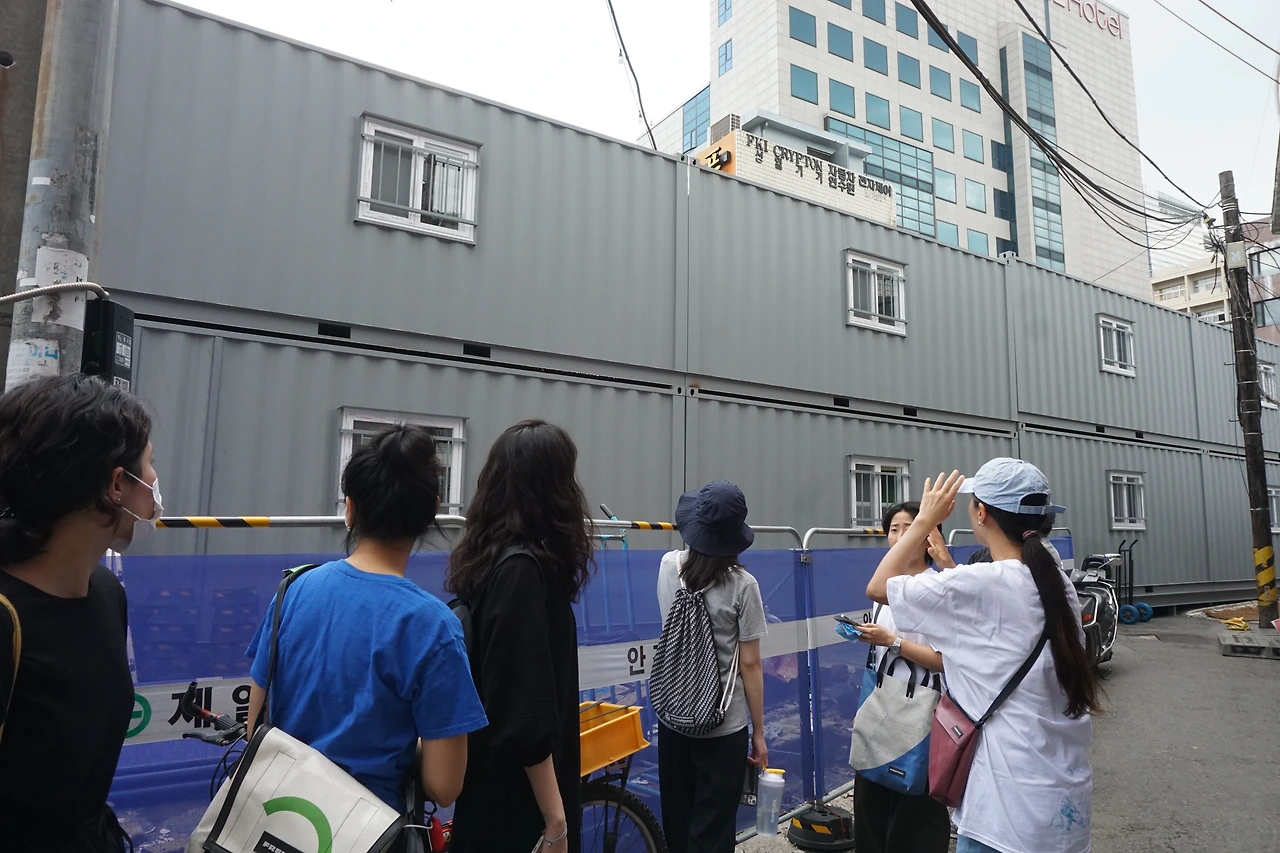 뒤에 보시면 컨테이너 건물이 있죠?