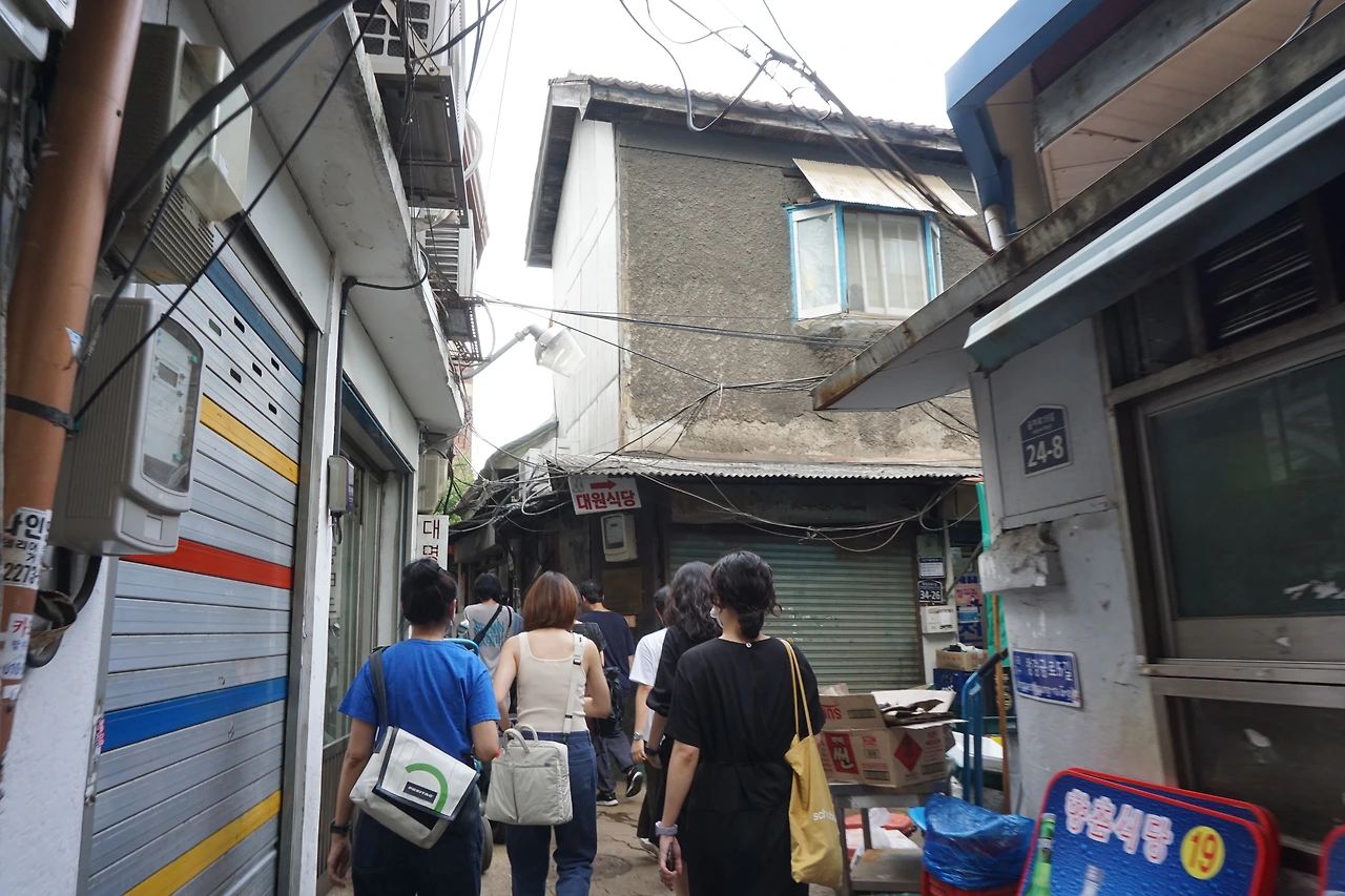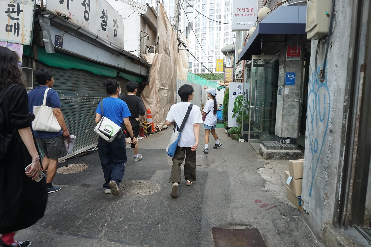 을지로 3가 역 4번 출구 -> 수표동 공구유통상가 및 을지로 노가리골목 -> 입정동 철공소 골목 -> 산림동 도심제조업 밀집지역 -> 인쇄소 골목 이동