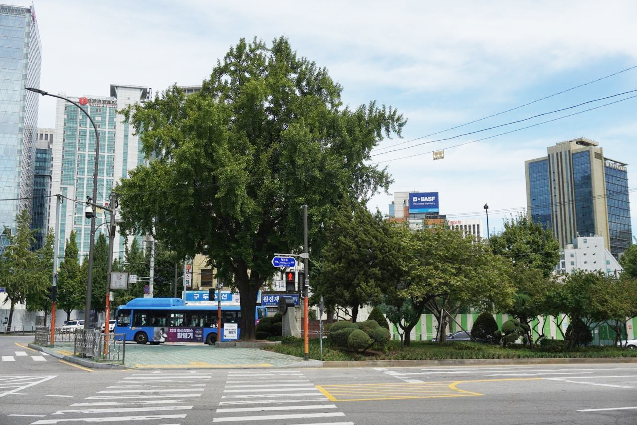 약현성당에서 나와서 바로 앞에 있는 횡단보도에 서서 건너편을 바라보면 큰 은행나무가 보인다. 은행나무 주변으로 크고 작은 나무들이 심겨 있는데 자세히 잘 살펴보면 비석 하나가 세워져 있다.