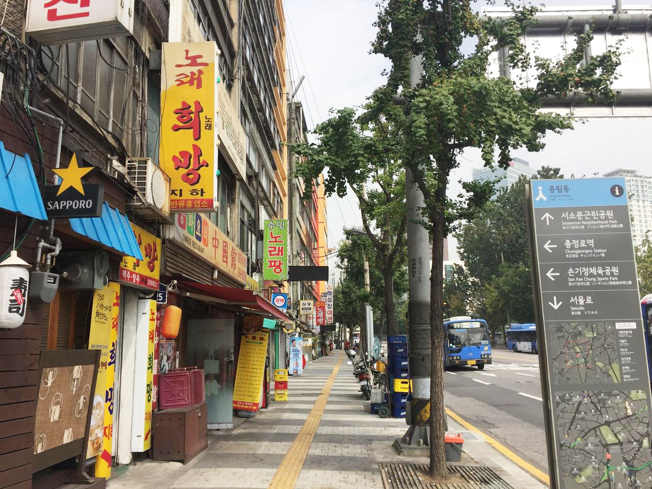 서울로를 내려와 정면과 우측으로 몇발짝 디디면 중림동이다. 중림동 인근에는 오래된 식당들이 많은데 대부분 맛집이다. (실제로 먹어본 경험이 있으므로 장담할 수 있다.) 순대국밥, 치킨, 족발, 닭꼬치, 닭 한 마리 탕, 마라탕, 분식, 콩나물 비빔밥, 칼국수까지 - 모두 다 맛있다. 서울로가 생기면서 새로 생긴 카페나 레스토랑도 몇몇 있지만 개인적으로 기존 식당에서 먹는 것을 더 선호한다. 최근엔 약간의 변화가 생기면서 기존에 있던 맛집들이 자리를 이동하거나 새로운 가게들이 생겨났다.