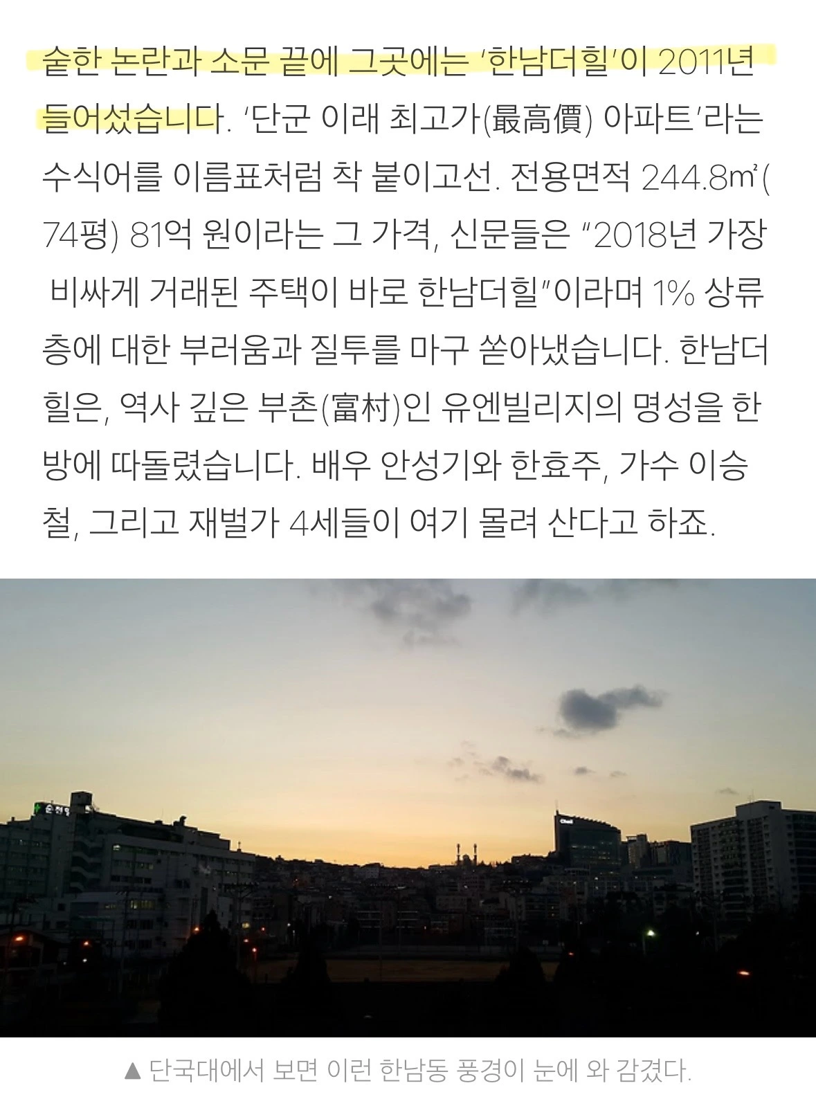 2007년: 단국대학교 한남캠퍼스 죽전 이전 -> 해당 부지에 2010년 한남더힐