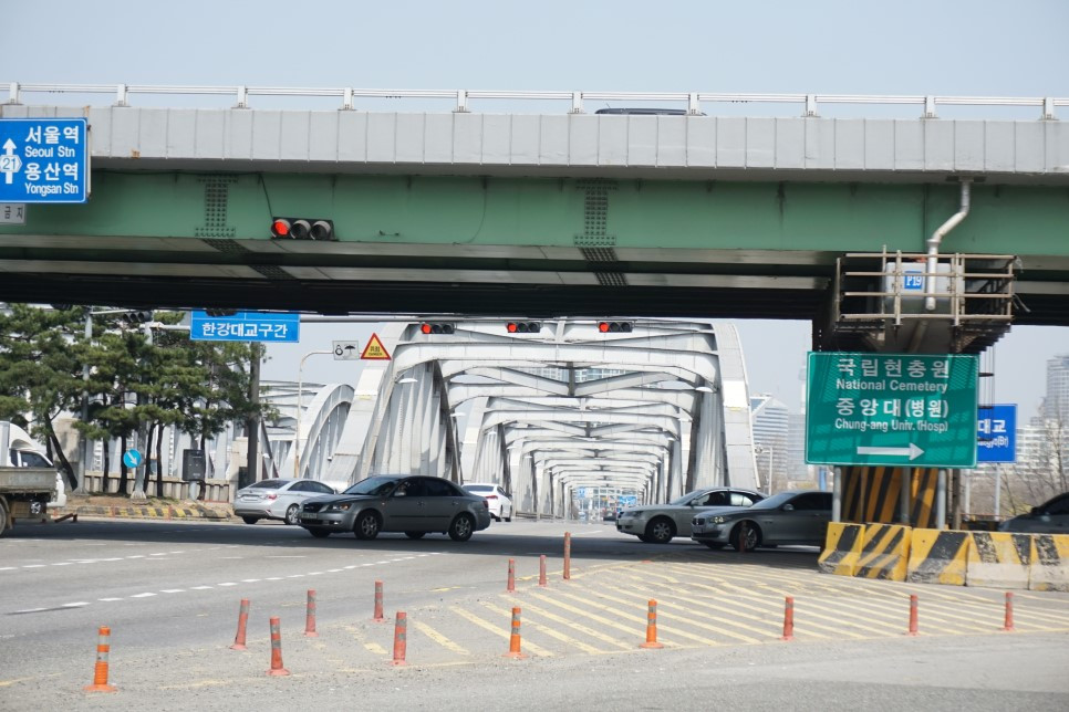 한강대교는 동작구와 용산구를 연결하며 노량진과도 가깝고, 63빌딩도 잘 보인다. 불꽃놀이 계절이 되면 63빌딩 앞엔 사람들로 넘쳐 나는데 한강대교 위에서도 충분히 볼 수 있기 때문에 일부러 여의도까지 갈 필요가 없다. 가끔씩 예상치 못한 이벤트성 불꽃놀이를 볼 때도 있다. 처음 다리를 건넜을 때 '구'가 달라진다는 사실이 신기했다. 횡단보도 하나만 건너도 동이 바뀌는 만큼이나. 곰곰히 생각해보면 한강의 남쪽과 북쪽이라는 위치적 특성을 따져 보았을 땐 어찌보면 당연한 일일지도 모르겠지만 다리로 연결된 길은 하나고 15분 정도의 거리 밖에 되지 않으니 설마 바뀔까 싶었는데 역시나였다. 다리를 연결한 것은 1차적으로 강남개발을 위한 이유에서이기도 했지만, 서울이라는 지역 안에서 어찌보면 단절의 가능성을 낮추는데 큰 역할을 했다고 본다.