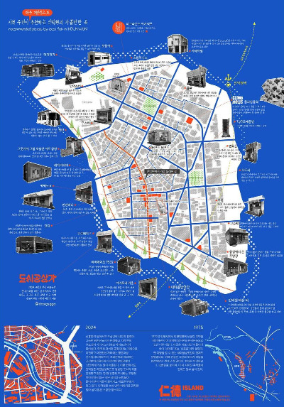 혼자 공사하다 너무 지루해 하천변을 따라 산책을 했었어요. 가다 보면 인덕원 성당이 있는데 그 맞은편 1층 식당 문에 파란 포스터가 부착되어 있더라고요. 보니까 ‘인덕원 지도 전시회’였어요. 다음 날 곧장 도시공상가를 찾아갔어요. 그때 기억이 생생하게 나요. 문을 열고 들어가서 소개를 한참 하니까 윤소장님이 당황해서 앉으라고 하셨어요. 1시간 정도 이야기를 나눈 뒤 식사초대를 했죠. 도시공상가를 방문한 날이 7월 초였고 3주가 지난 금요일에 점심 식사를 하러 오셨어요. 그때 안양에서 공간을 운영하는 팀도 같이 왔었어요. 밥을 먹으며 도시공상가에서 운영되는 정기적인 프로그램이 있는지 물어봤는데 아직 없다고 하시더라고요.