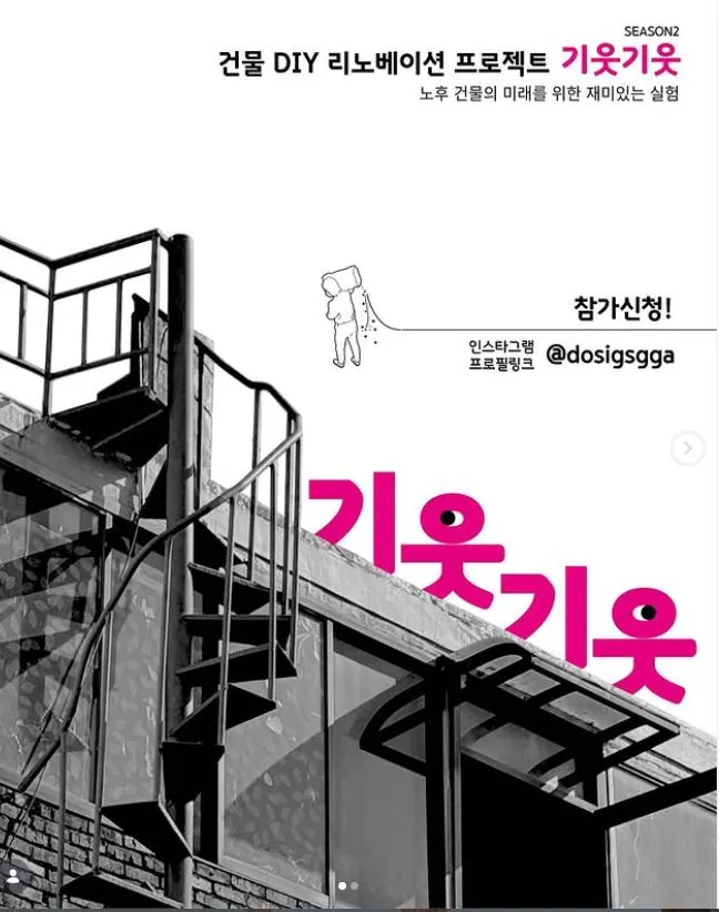 덕분에 동네 청년도 만났고요. 그 청년이 도시공상가에서 <코코아 북클럽> 이라는 프로그램을 시작했는데 지금까지도 계속되고 있어요. 운영자가 이룬 게 아니라 그 청년이 도시공상가를 지지하고 모습인 거죠. 도시공상가가 말하는 지향대로요. 기웃기웃 프로젝트도 DIY리노베이션에 대해 많은 사람이 같이 알면 좋겠다는 생각에 시작한 거예요. 스터디와 투어를 포함해 <기웃기웃>이라는 이름으로 1탄은 4회차로 기획하고 진행했어요. 타이틀은 도시공상가 차 소장님이 기발하게 작명했죠. ‘영인 씨가 맨날 기웃기웃하니까 기웃기웃 어때요?’라고. 그렇게 프그램명이 ‘기웃기웃’이 된 거예요. 3탄까지 했어요.
