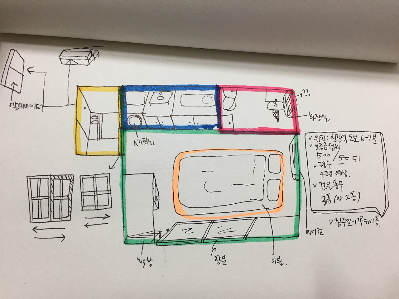 서울 상경 후 처음으로 머물렀던 방의 기본적인 조건이다. 이 방에서 동생과 함께 지냈다.