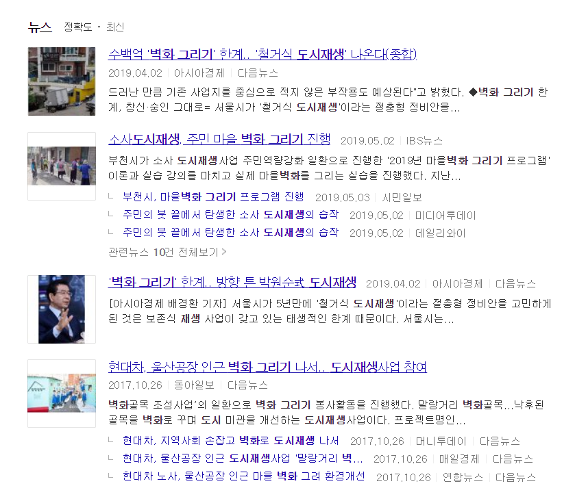 대한민국의 대표적인 도시재생 사례로 뽑히는 것이 바로 '벽화 그리기 사업'이다. 낙후되거나 오래된 동네에 벽화를 그리고 나니 사람들이 모이고, 동네가 활기차게 변화하는 것처럼 보이자 전국 방방곡곡에서 벽화를 그리기 시작했다. 벽화를 그리는 것 까지 좋다고 치자. 그 이후에 발생할 수도 있는 여러 가지 문제점들에 대한 방안이나 벽화를 유지하고 관리하기 위한 계획을 세웠을지는 의문이다. 기다림 없이 '단기간에 결과를 내야' 하는 구조적 모순 안에서 똑같은 방법을 적용, 반복하는 이상 도시재생은 절대 성공할 수 없다. 또한 개인적인 생각이지만 과연 벽화 그리기가 도시 재생의 사례로 볼 수 있는 것인지도 헷갈린다. 도시재생이라기보다는 공공미술의 행위에 가까운데, 왜 갑자기 도시재생의 맥락으로 해석되고 있는 것인지 모르겠다.