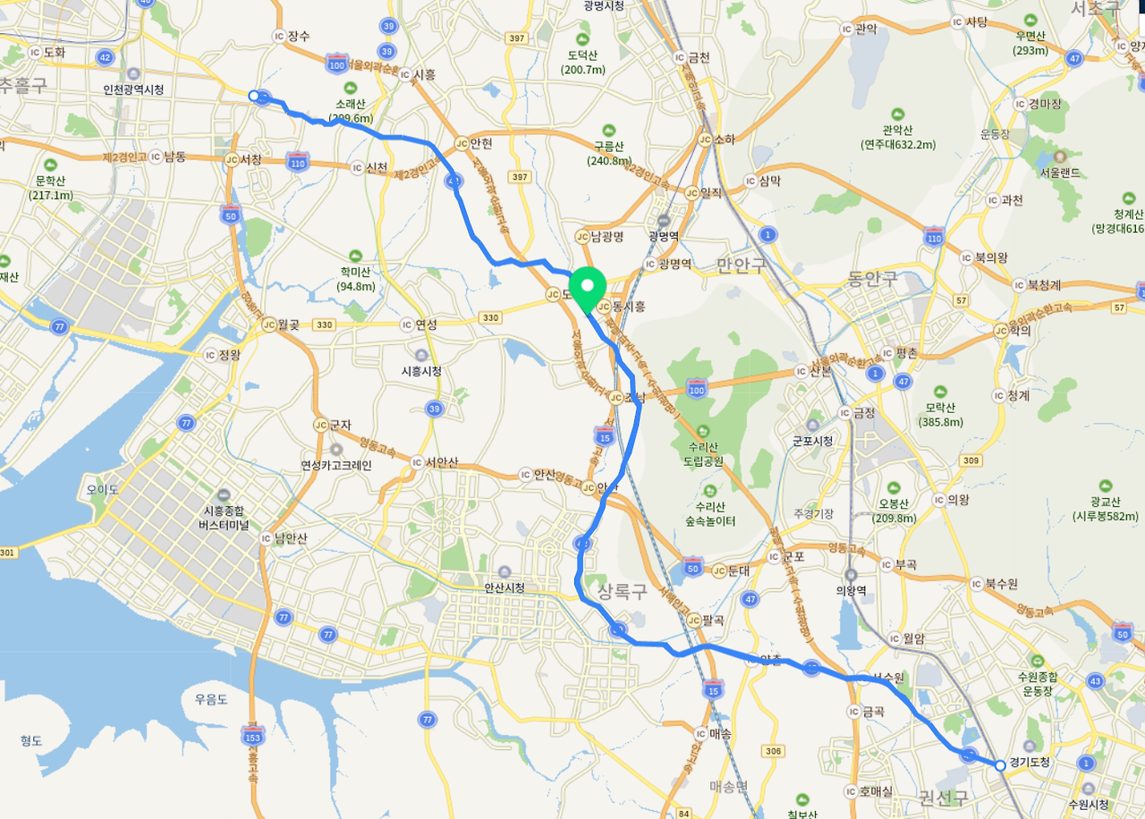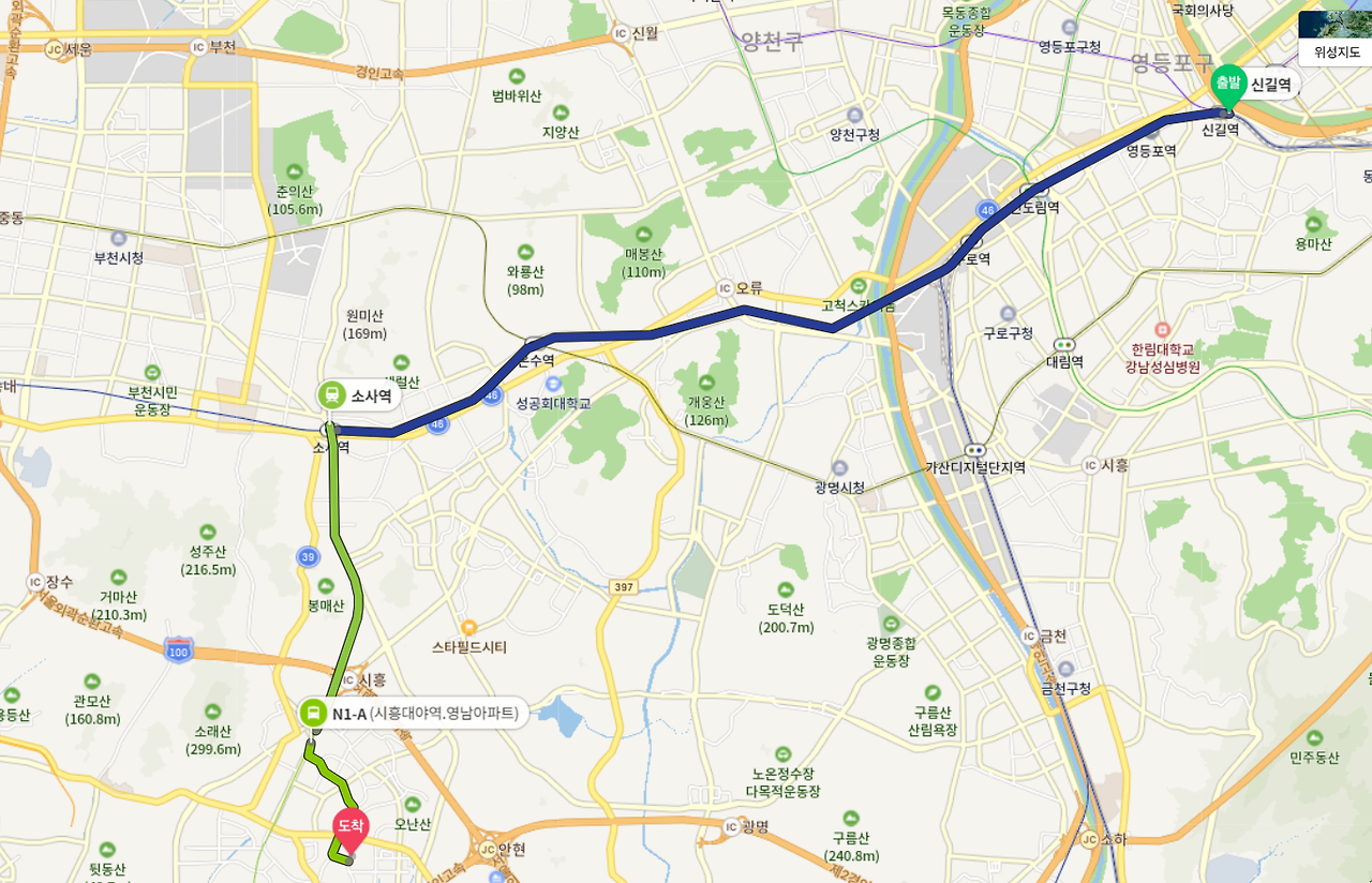 2) 이동시간: 신길역 출발 - 소사역 환승 - 신천역 도착 / 52분