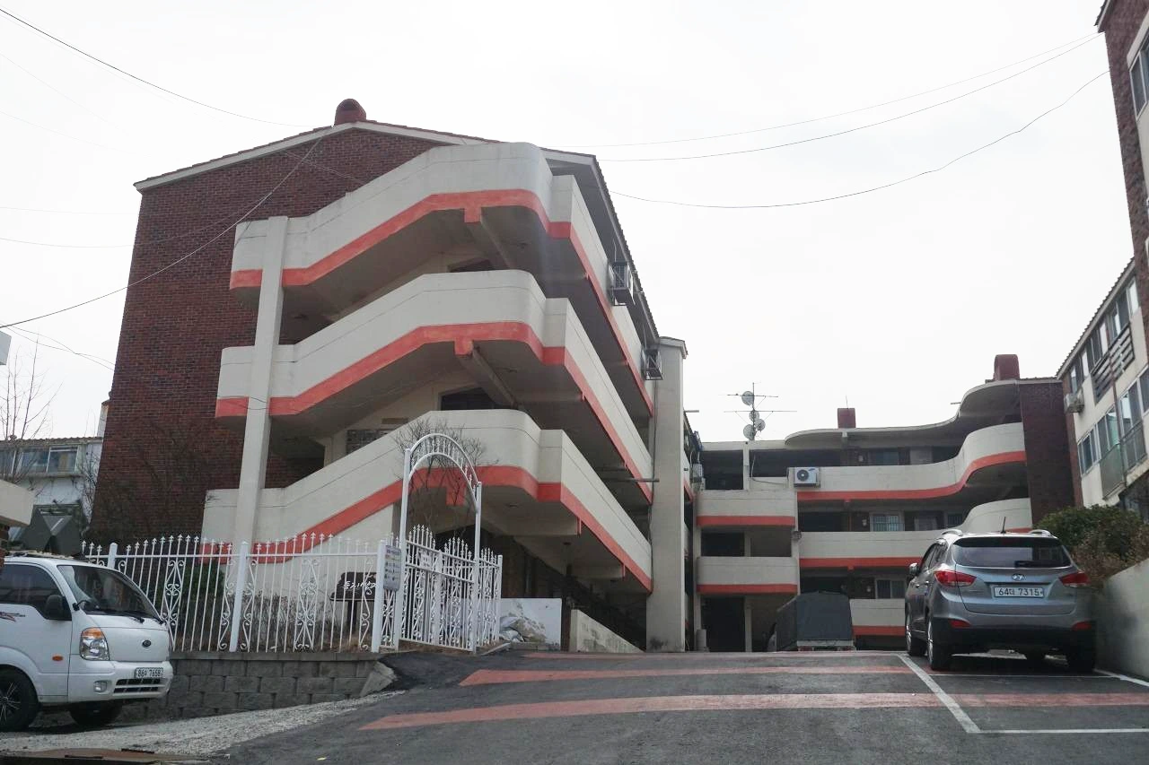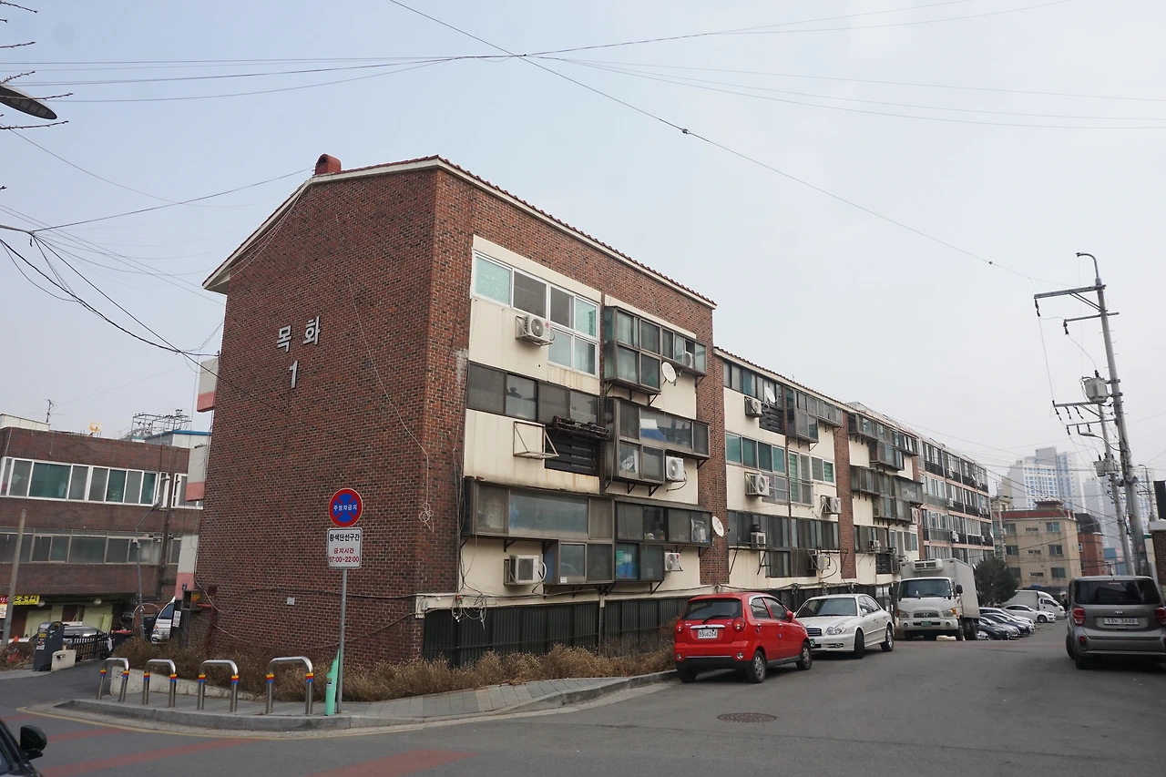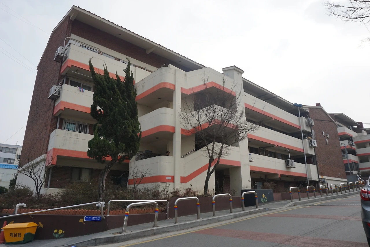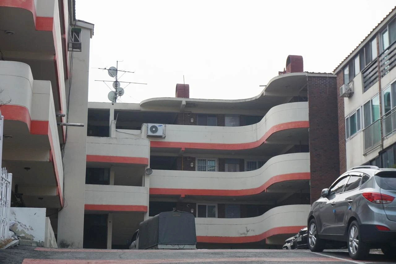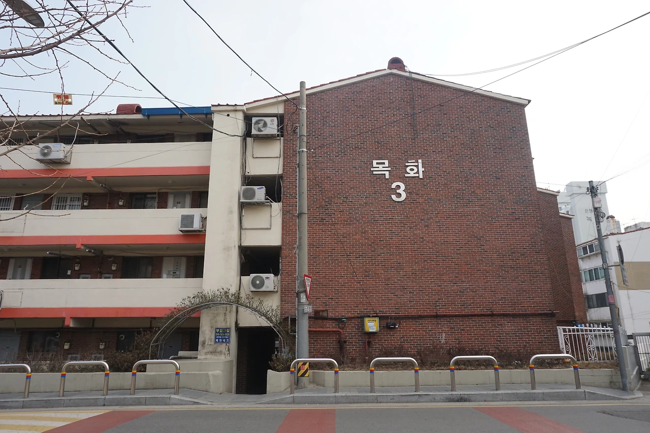 오르락내리락하는 언덕길 위 3개의 건물이 나란히 자리하고 있다. 목동 철거민 투쟁 당시 입주권을 끝까지 거부하고 생활터전을 요구했던 105세대의 목동 철거민들이 거주할 수 있도록 당시 정부의 융자금으로 건설된 목화연립. 'ㄷ' 형태로 구부러진 복도식 형태. 끝 모서리 부분이 둥글둥글한 형태가 인상적이었다. 솔직히 말하면 저 긴 복도를 한번 걸어보고 싶었지만 외부인의 출입을 막는 문이 설치되어 있어서 접근이 불가했다. 세월이 흐르며 목화연립에 살고 있는 사람들은 바뀌었겠지만 그 시대의 기억과 시간을 품고 있는 공간은 그대로여서 이곳을 거쳐간 사람들이 다시 찾아왔을 때 추억할 수 있어서 다행이라 생각했다.