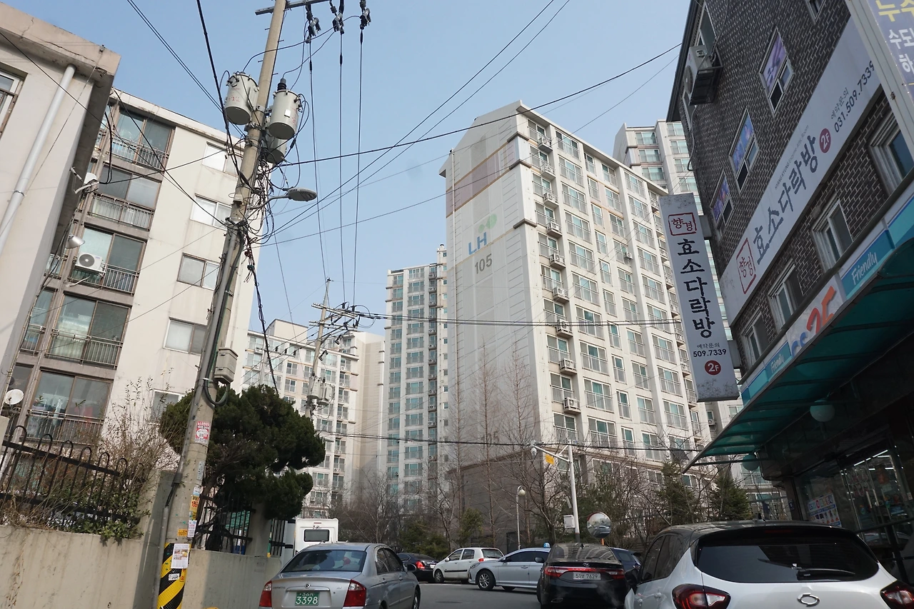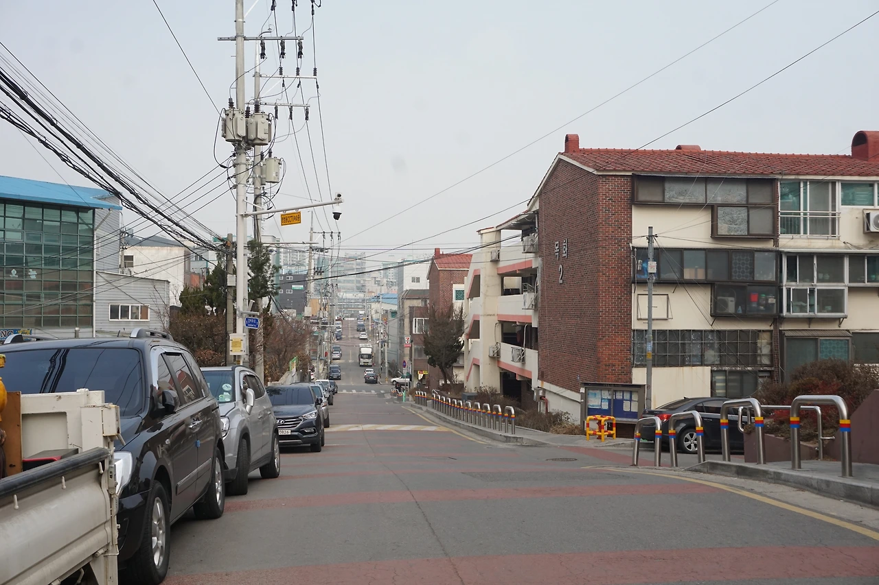 이 지역의 중심축 같은 역할을 하고 있는 복지관을 지나 나지막한 언덕길을 오르면 아파트 단지가 같으면서도