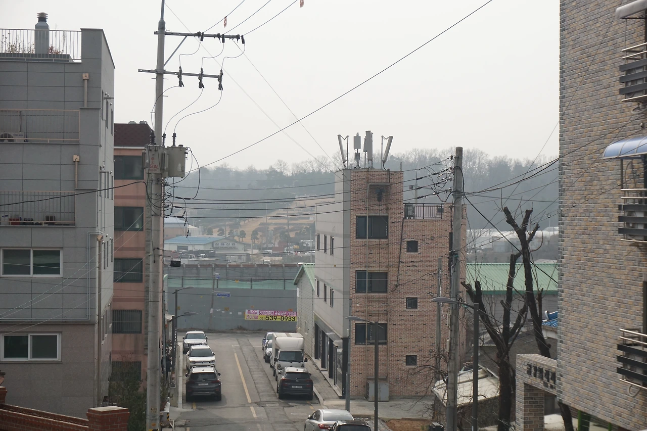 드문 드문 공장들이 보이는 묘한 풍경을 마주하게 된다. 아파트가 있긴 하지만 대단지로 구성되어 있는 건 아니고 서로 다른 이름을 가진 소규모 공장 몇 군데와 다세대 주택 빌라와 섞여 여기가 주거단지인지 공장지대인지 다소 헷갈리는 그 와중에 목화연립(주택)이 보인다.