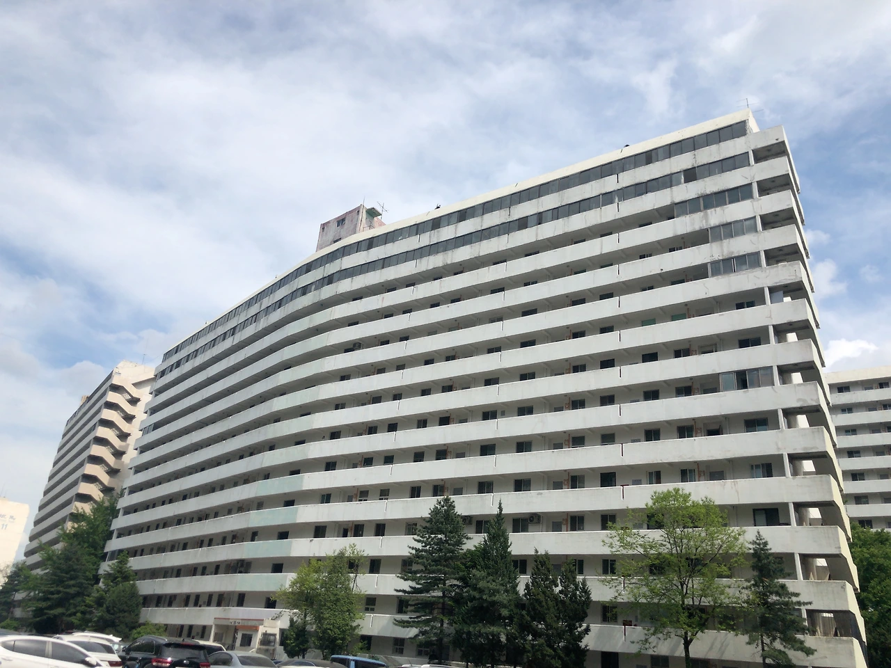 이 장면들에서 촬영 장소가 <개포주공아파트>이라는 것을 한눈에 알 수 있었던 데에는 재건축 소식을 전해 듣고 방문한 적이 있었기 때문이었다. 아주 더웠던 2018년 여름 대부분의 주민들이 아파트를 떠났던 그때 이곳을 찾았다. 이주기간이 종료된 건 아니어서 아직 떠나지 못한 이들도 있었지만 빈집이 눈에 띄게 많았다. 사람이 없는 빈자리를 채운 건 이삿짐센터 전단 스티커와 공가를 알리는 경고문이었다. 이런 분위기가 무색하게도 높이 뻗어 곧게 자란 나무들은 초록빛을 뽐냈고 더운 날 잠시 쉬어가라는 듯 커다란 그늘을 만들어 주었다. 싱그러움이 가득했던 그날의 여름 오랫동안 잔상으로 남아 있었다.