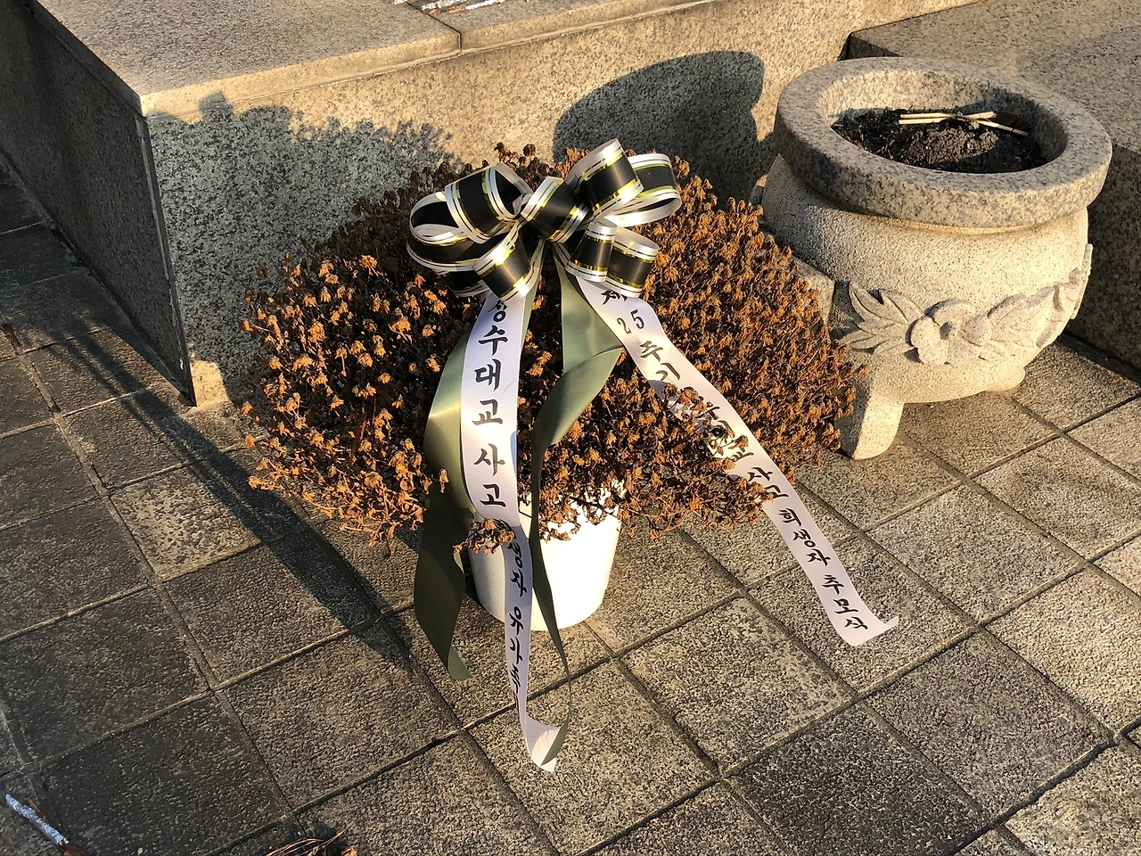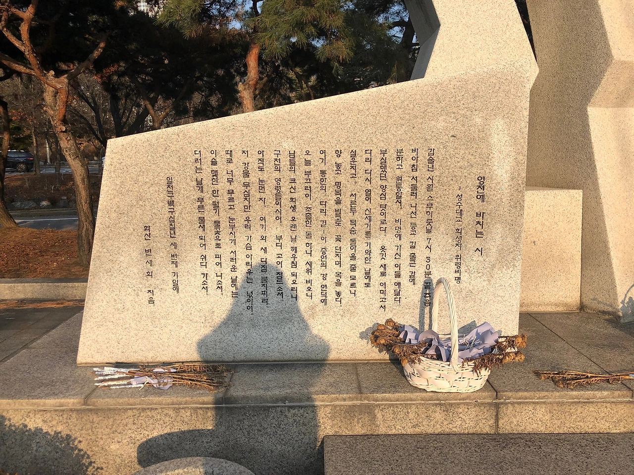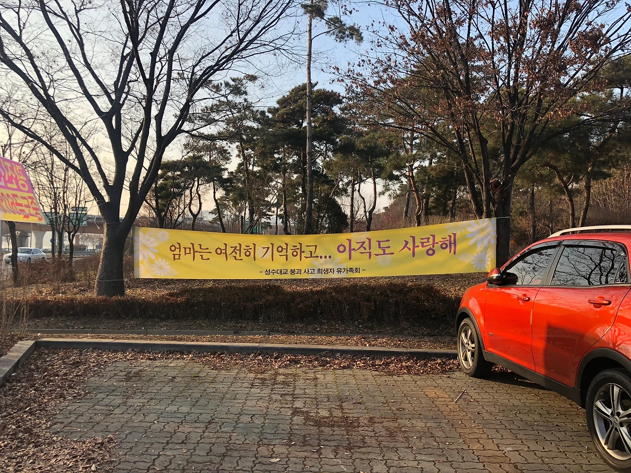 성수대교 다리 아래로 추락한 버스 안에는 학교로 향하던 학생들이 타고 있었기에 위령비 주변엔 해당 학교의 총동창회에서 다녀간 흔적이 있었다. 매년 이곳에서 가족들은 위령제를 지낸다. 당사자가 아닌 이상 그 어떤 위로를 해 줄 수 있을까. 대신해줄 수 없다는 것을 유가족회에서 걸어둔 현수막을 보니 더 분명해졌다. 오직 그들만이 알 수 있는 슬픔과 기억이다.