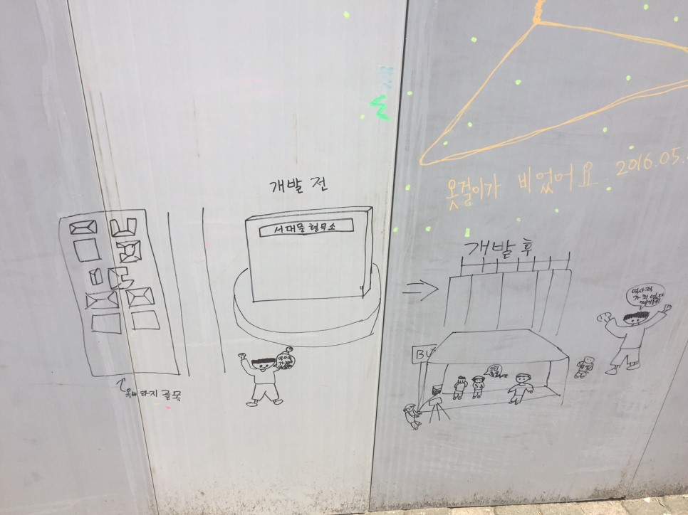 골목길에서 낭만을 찾는 누군가에게 한 번쯤 이 골목길이 어떻게 생성되었고, 이전엔 어떤 모습이었는지, 골목길과 연결된 동네는 어떤 곳이었는지에 대한 질문을 던져 보고 오면 어떨지 제안해본다. 누군가는 너무 유난스럽고 진지한 거 아니냐고 말할지도 모른다. 하지만, 당신이 여기에 살고 있다가 다른 곳으로 이사 가게 된 주민이라면 어떨지 입장 바꿔 생각해본다면 쉽게 말할 수 없을 것이다.