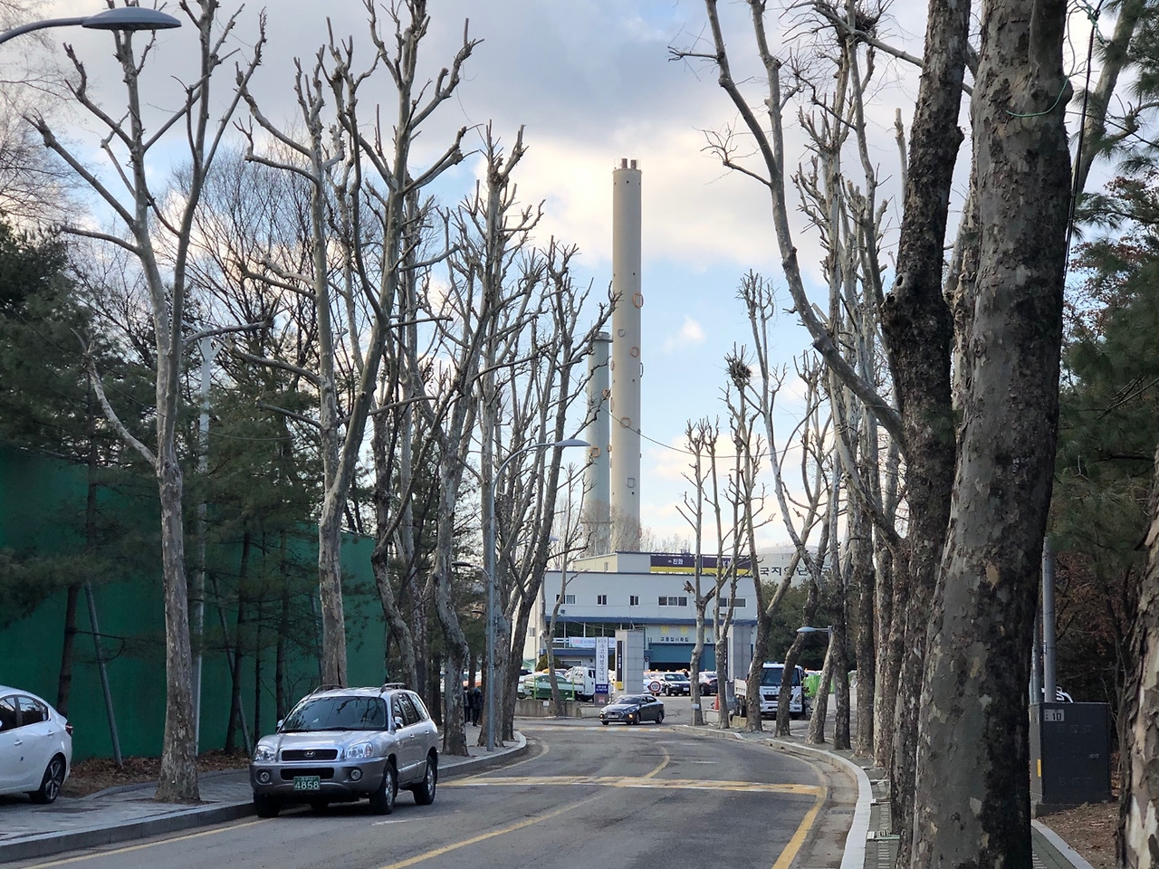 고층건물, 아파트 다음으로 보이는 굴뚝. 웬 굴뚝인가 싶어 알아보았더니 한국지역난방공사와 함께 있는 자원회수시설 굴뚝이었다. 답사를 하며 이렇게 생긴 굴뚝을 본 건 두 군데다. 난지도 옆 자원회수시설, 목동의 서울 에너지공사 목동 본사. 에너지 효율을 높이기 위해 아파트 단지 인근에 있거나 쓰레기에서 발생하는 가스를 활용하여 주변 지역의 난방을 담당하고 있지만 정작 인근 주민들에게는 혐오시설로 여겨지는 시설이다.