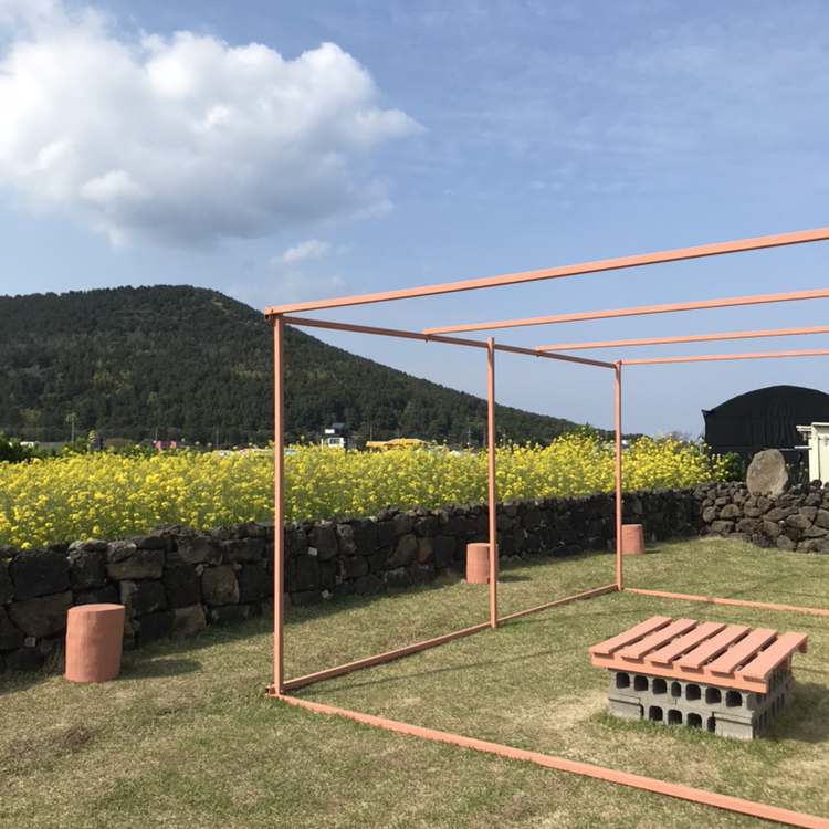 올레 2코스 중간에는 정말 한적한 시골 동네가 나온다. 논밭부터 노인복지회관 같은 것들이 나오다가 큰 컨테이너 창고 같은 걸 봤는데 ‘어반가라지’ 라고 쓰여있었다. 그냥 아무 생각 없이 지나쳤다가, 앞에 ‘열었슴’ 이라고 적힌 팻말을 봤는데... 뭔가 저 ‘슴’도 그렇고 폰트도 그렇고, 범상치가 않아서 들어가 보고 싶어 졌다.